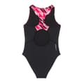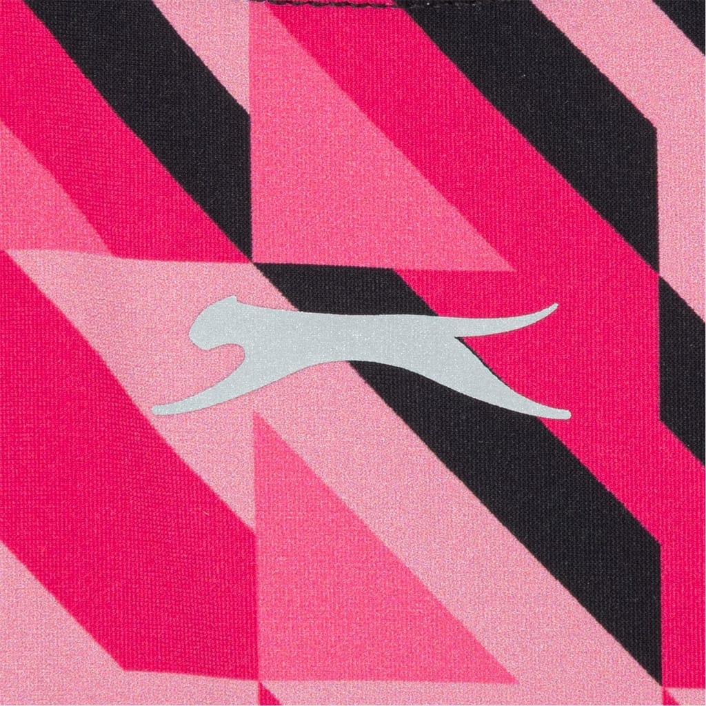 Discover the Slazenger one-piece swimwear, featuring a high neck design and a striking geometric pattern. This piece is adorned with a subtle logo embellishment, adding a touch of brand identity. Perfect for those seeking a blend of style and functionality in their swimwear collection. -