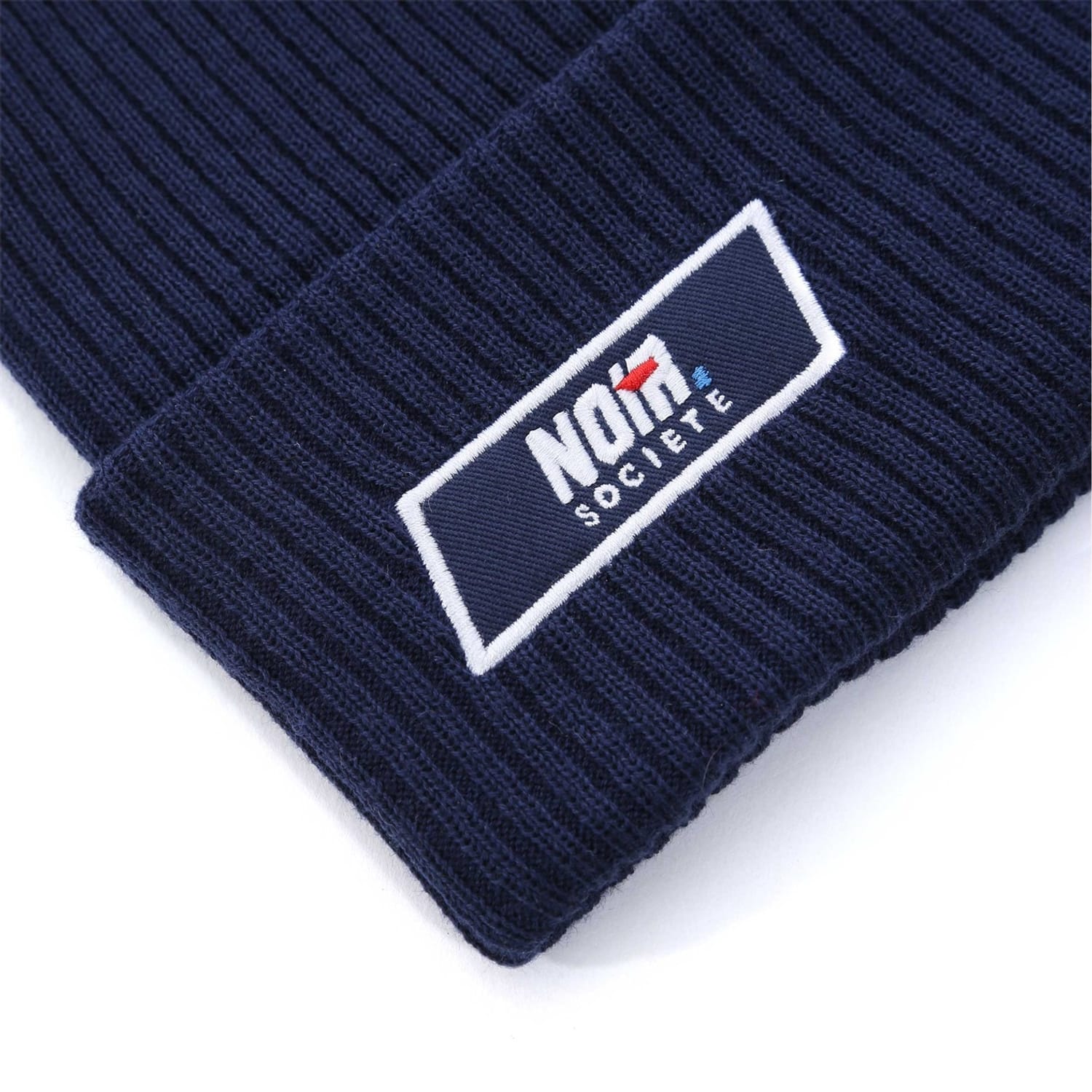 The Societe Noir Woven Patch Beanie offers classic cold-weather protection with minimalist style, featuring a ribbed knit that provides a snug fit for this winter cap.
