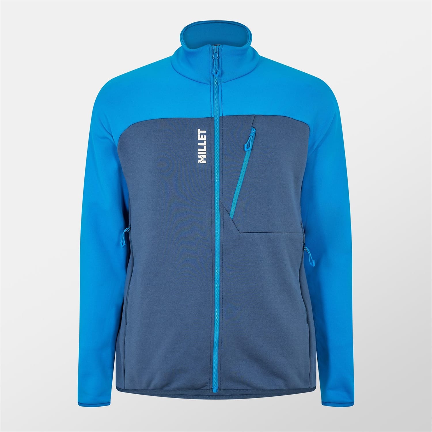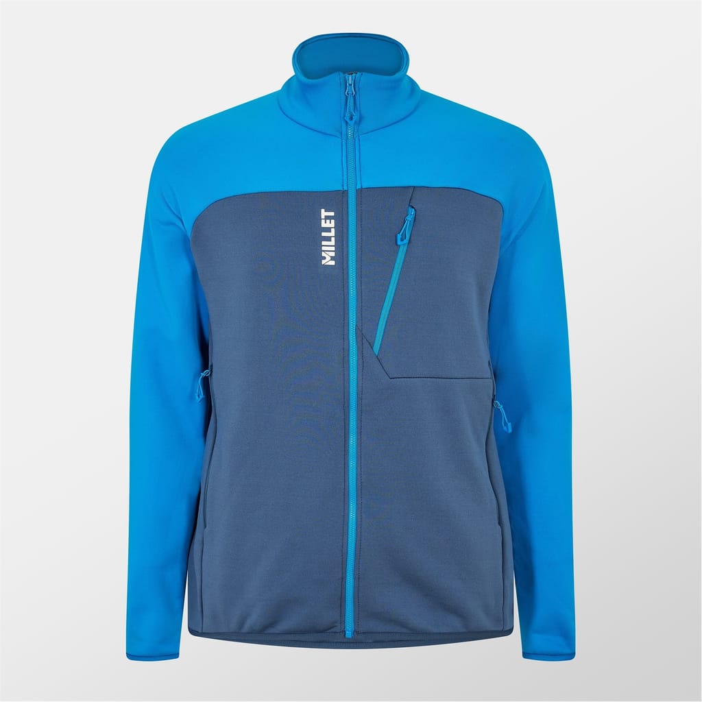 This Millet fleece jacket features a high collar and a full zipper closure, offering a regular fit. The design includes a straight hem and a colour block pattern, complemented by logo embellishments and practical pockets. -