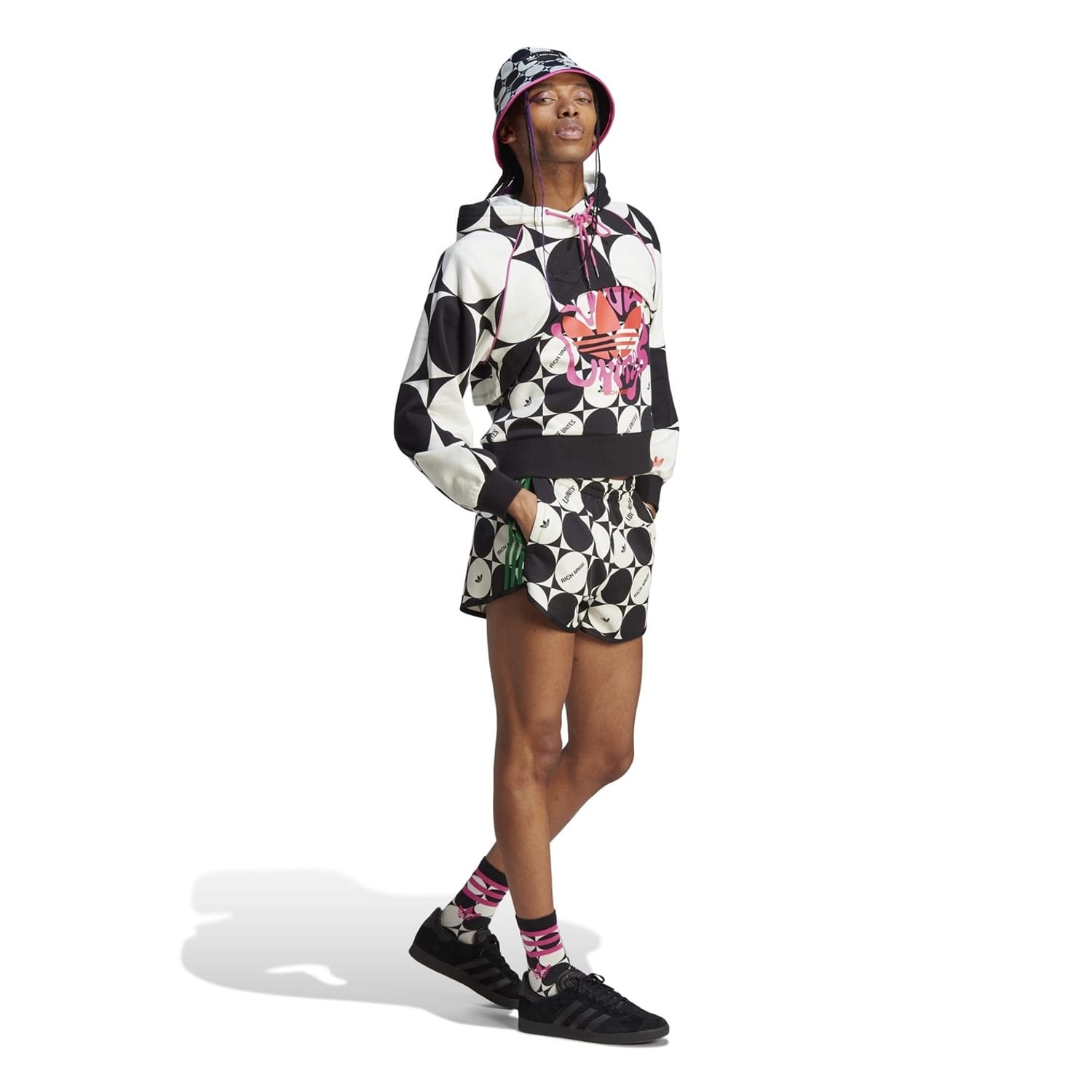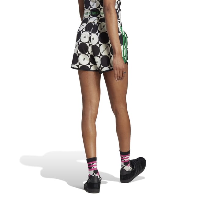 Celebrate diversity with adidas Originals pride shorts. These athletic shorts feature a geometric pattern and a large genie graphic, adding a unique touch to your wardrobe. The drawstring closure ensures a comfortable fit, while the iconic logo embellishment highlights the brand's signature style. -