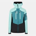 The Millet softshell jacket features a hooded design with a zipper closure, offering a regular fit. It showcases a striking color block pattern and is adorned with a shield and logo embellishments. The jacket is completed with a straight hem, making it a versatile addition to your wardrobe. -