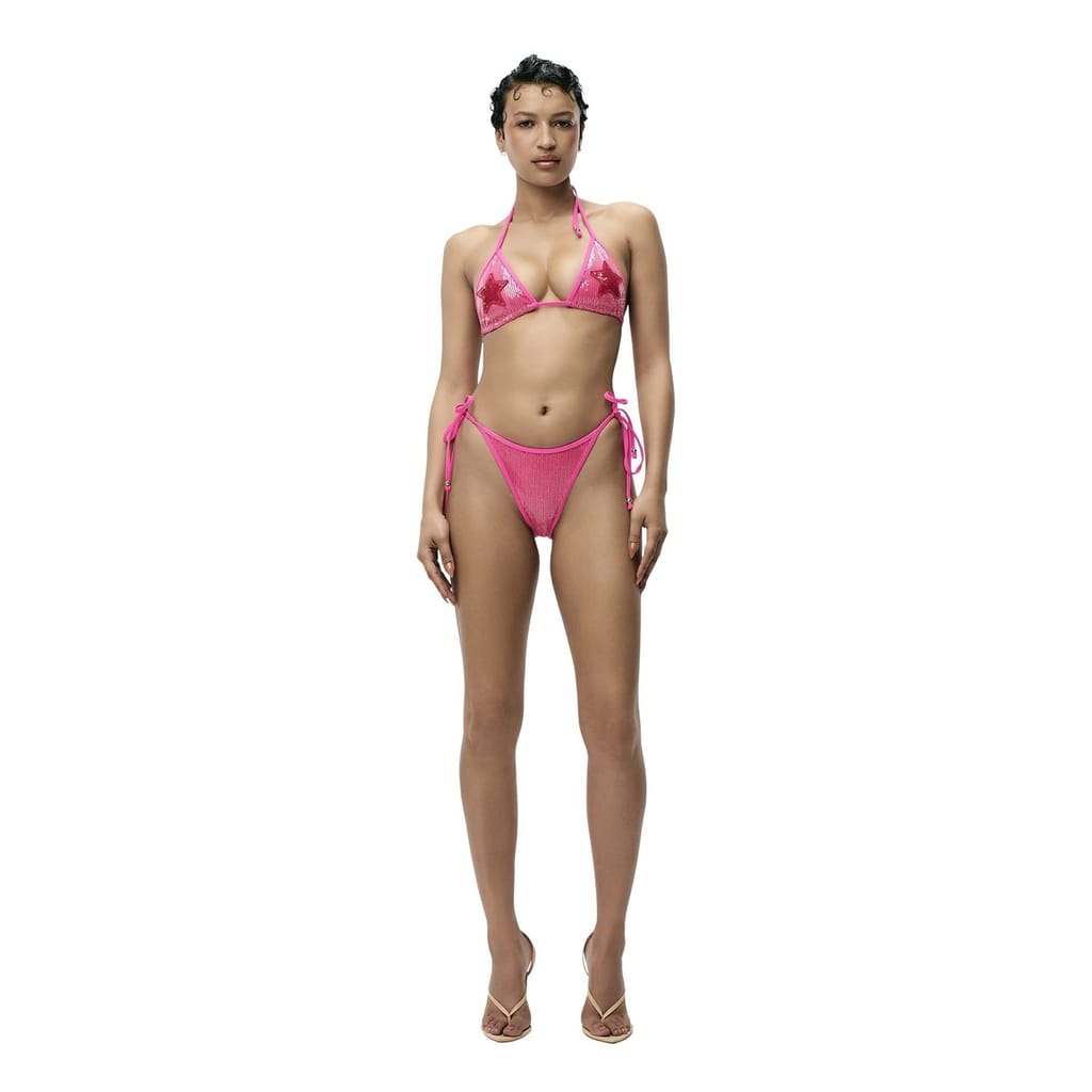 This adidas Originals swimwear is a stylish two-piece bikini, perfect for beach outings. Featuring a tie closure, it offers a secure fit. The sequin embellishments add a touch of sparkle, making it a standout choice for sunny days by the water. -