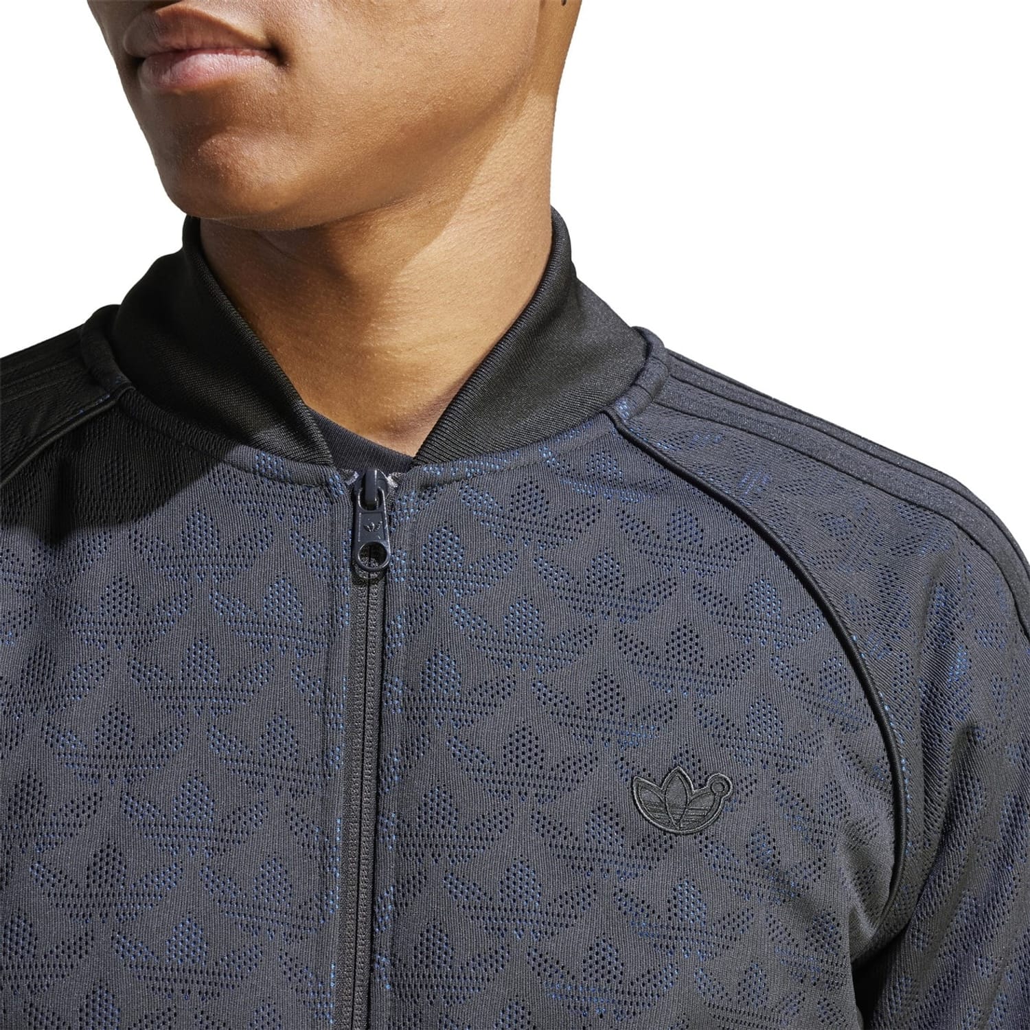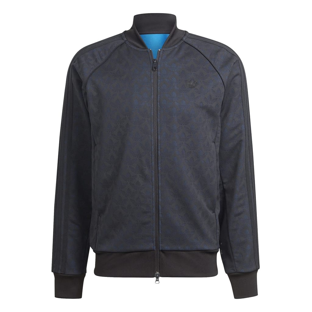 This adidas athletic sweatshirt is crafted for versatility and style. Featuring a bomber collar and a convenient zipper closure, the regular fit ensures comfort while the long raglan sleeves enhance mobility. The ribbed cuffs add a snug touch, while the all-over logo pattern showcases brand identity. Perfect for track activities, it embodies practical design with iconic flair. -