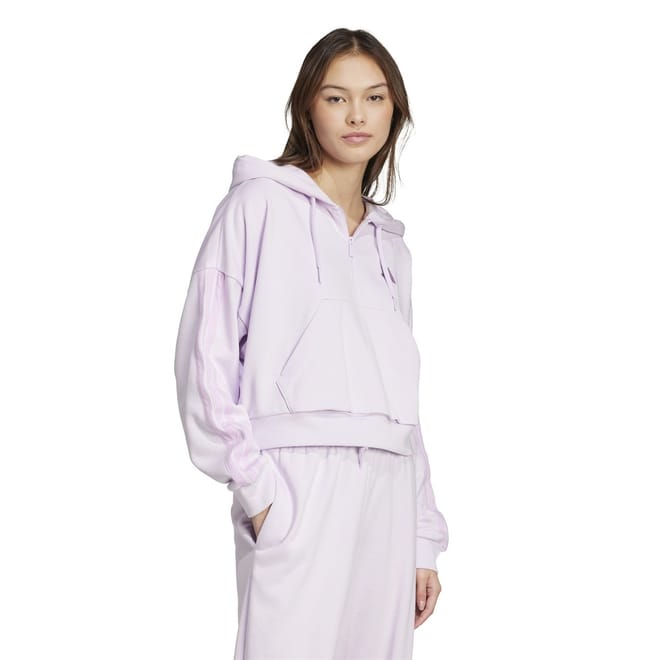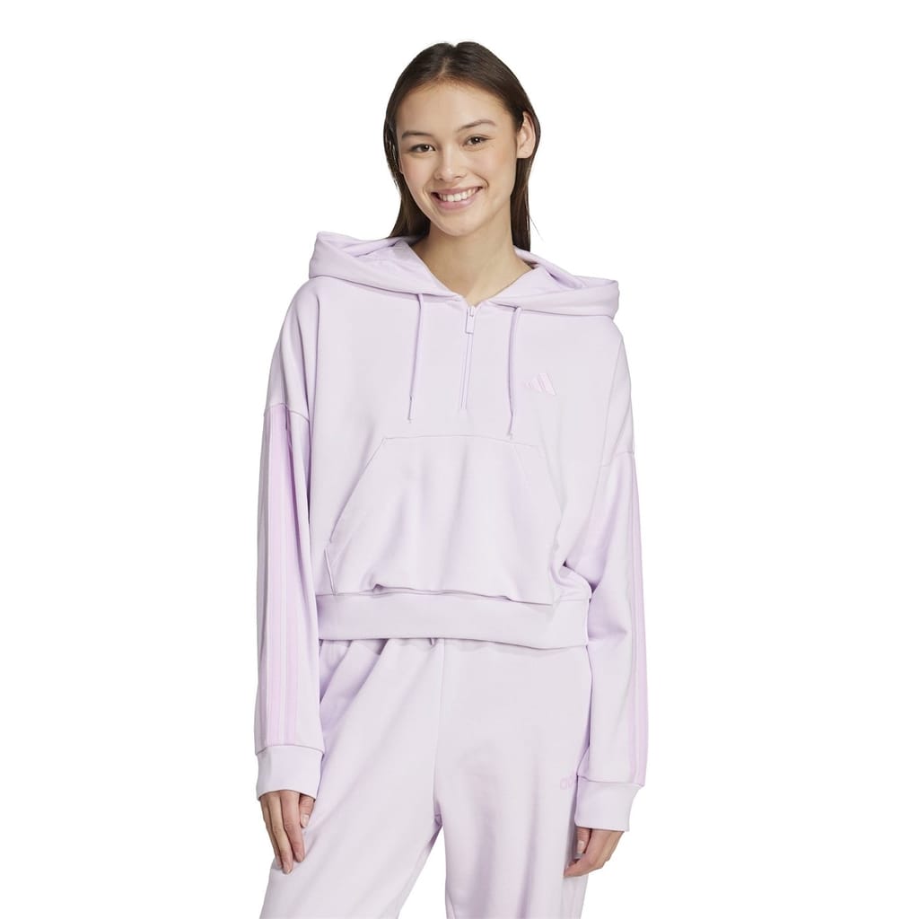 The adidas Essentials 3-Stripes French Terry Quarter-Zip Hoodie is a versatile layer for casual outings and relaxed days. The dropped shoulders create a relaxed silhouette, while ribbed trims on the cuffs and hem ensure a snug, comfortable fit. Crafted from 280g French terry fabric, it delivers a soft, cosy feel, perfect for lounging or light training.