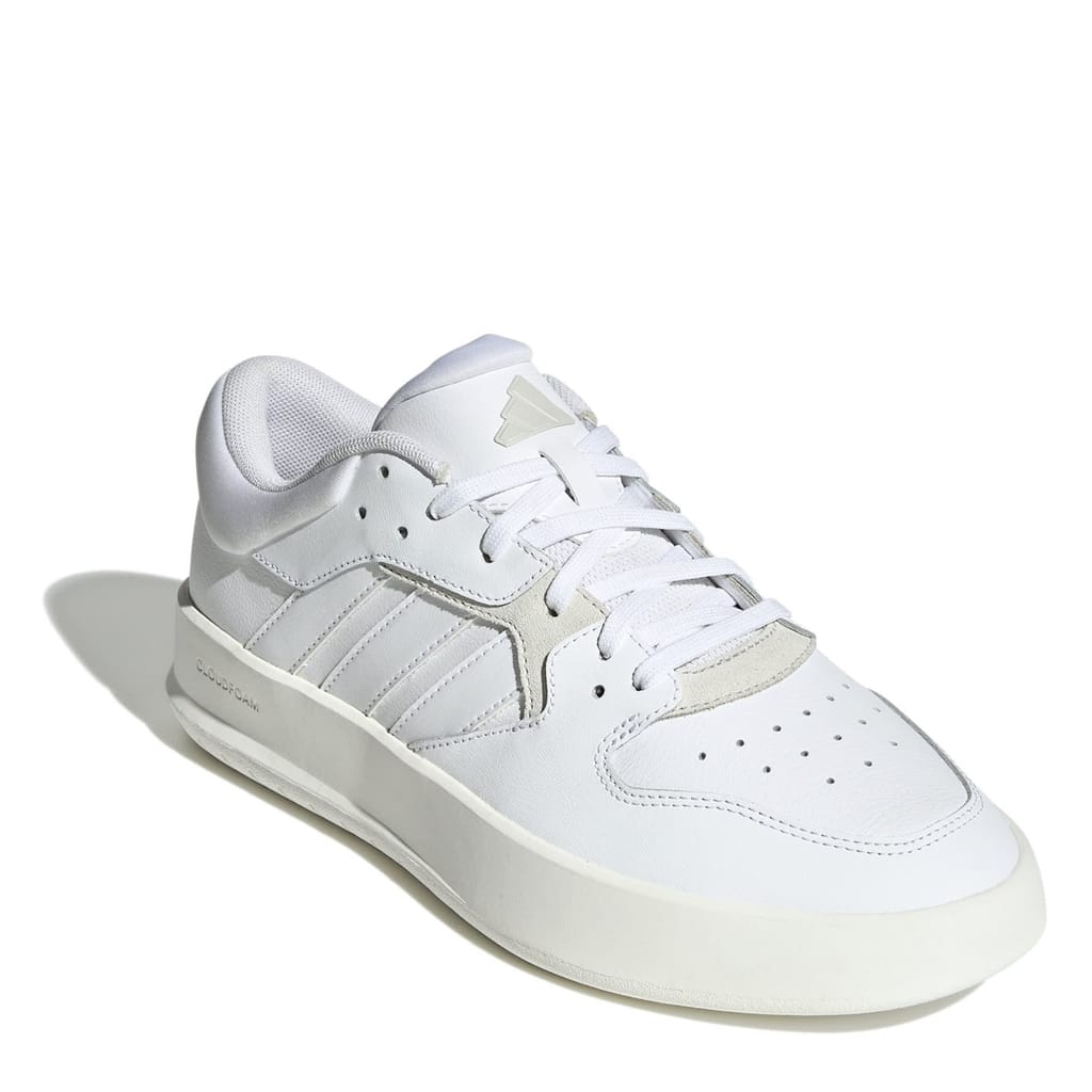 Make a sporty statement every time you step out. These adidas sneakers grab the eye with bold details and striking colours. The full-grain leather upper is sleek, smooth and built for daily wear while a Cloudfoam midsole provides a soft yet stable ride. The sturdy rubber outsole rounds out this low-profile design, keeping you firmly planted wherever adventure leads. -