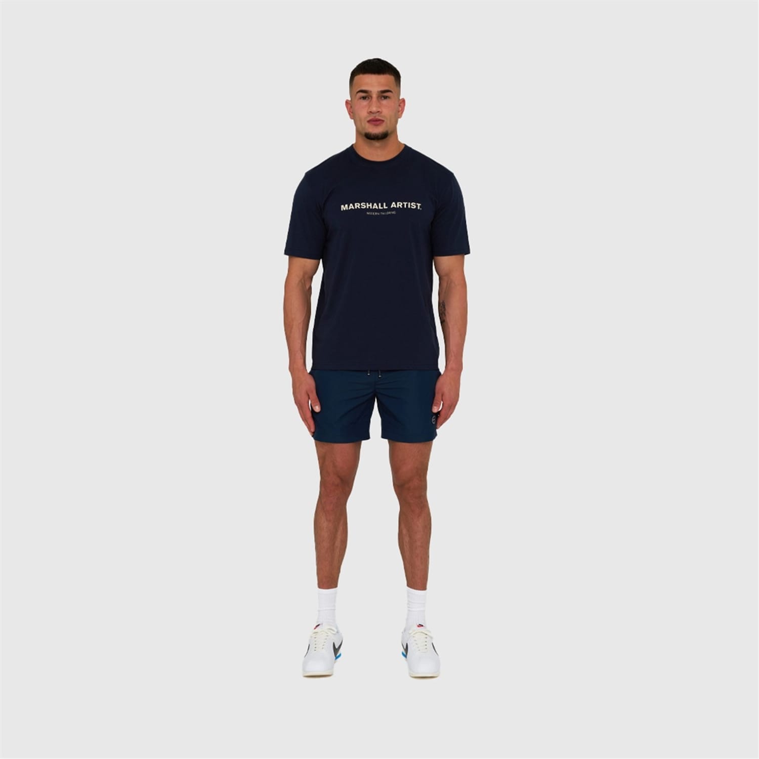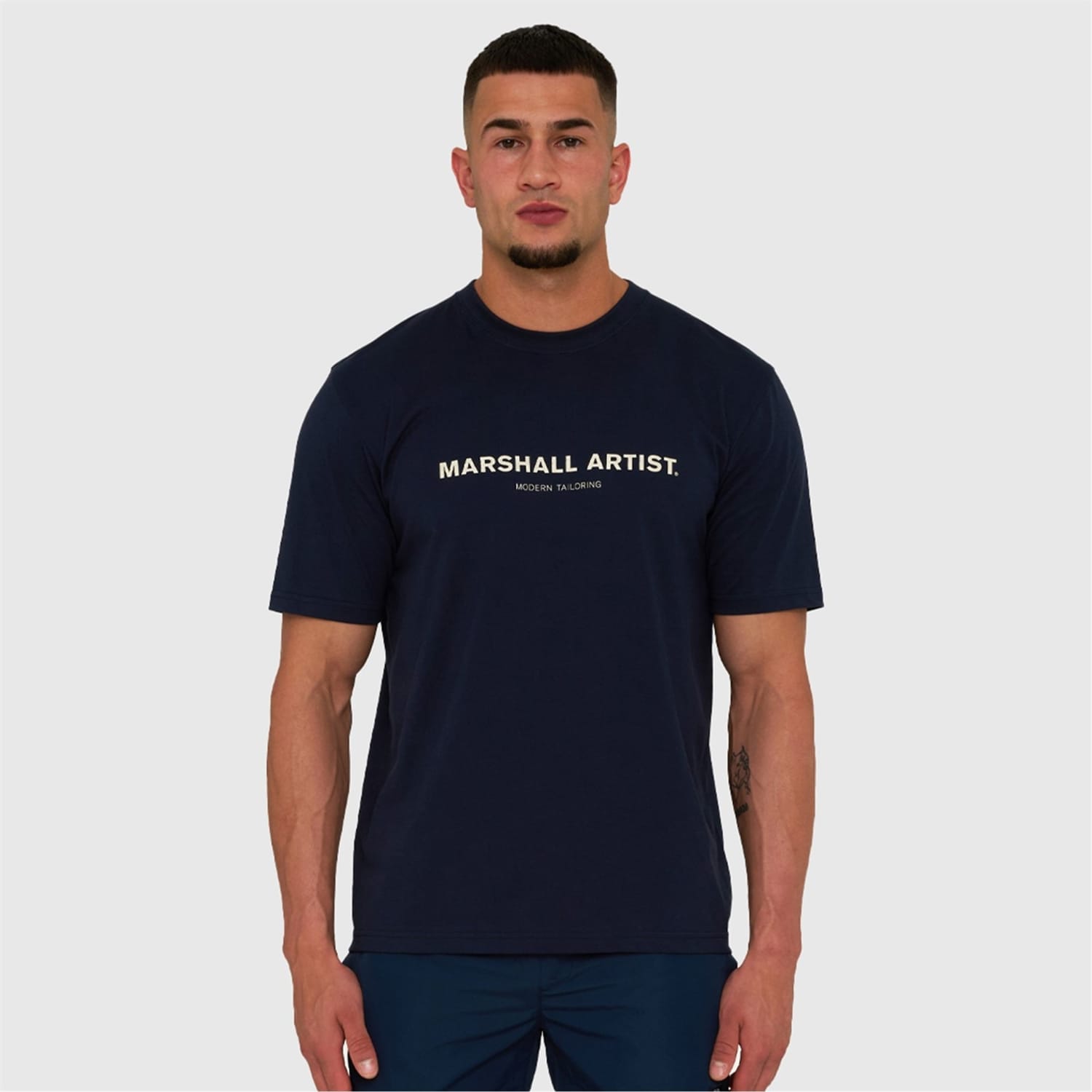 Discover the casual elegance of Marshall Artist tops. This regular fit piece features a crew neck and solid pattern, enhanced by a distinctive logo and lettering graphic. Perfect for a relaxed yet stylish look. -