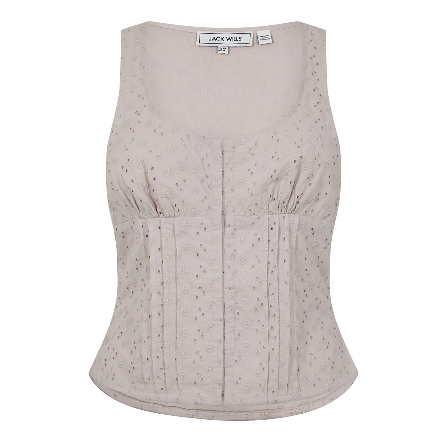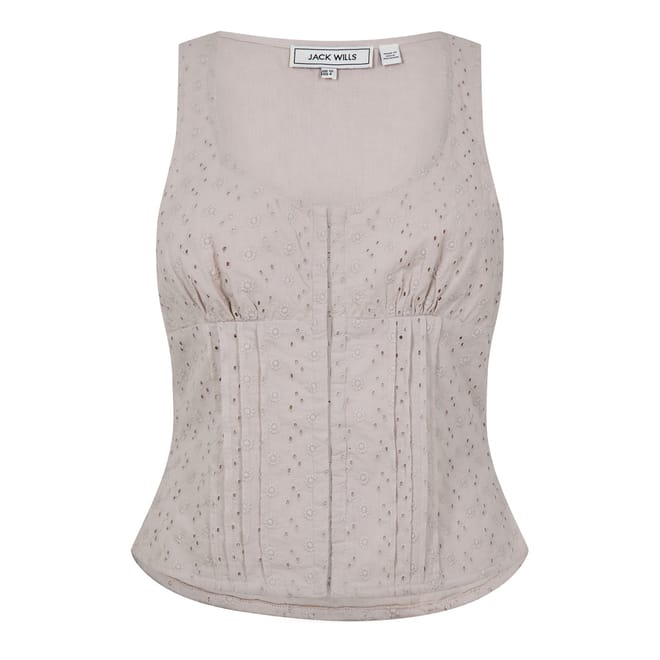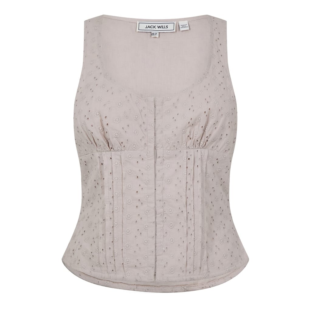 Add some structure to your summertime silhouettes with this Broderie Corset Top from Jack Wills. Breathable, luxuriously lightweight and soft, this corset top enhances your comfort whilst elevating your ensemble with an effortlessly eye-catching appeal. From lunch dates to seeing the girls, this corset top will become a seasonal summertime staple.