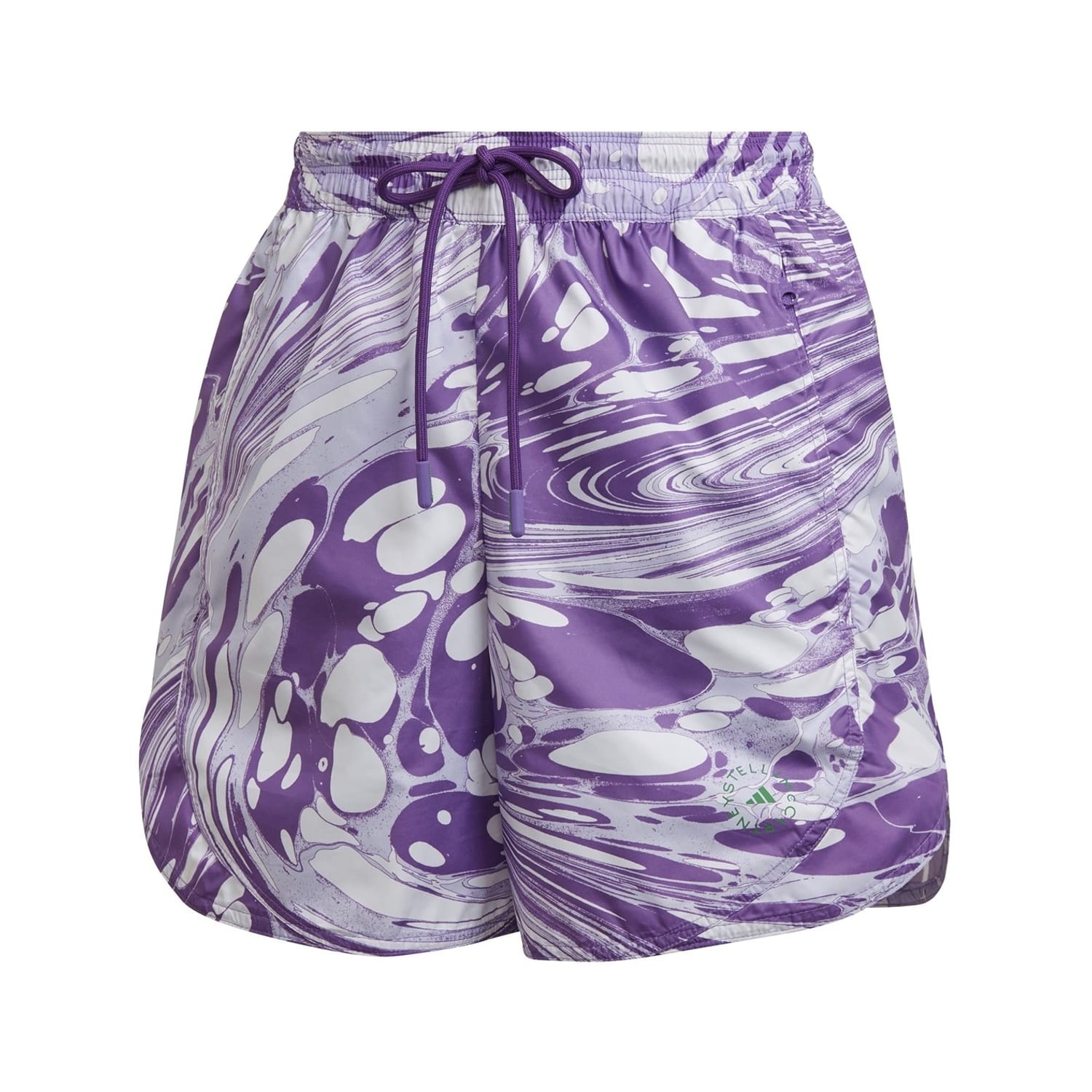 These adidas running shorts are designed for performance, featuring a marble print and crafted for athletic pursuits. Part of the activewear collection, they include a drawstring closure for a secure fit. The shorts are embellished with a logo and practical side pockets, making them a functional choice for your active lifestyle. -