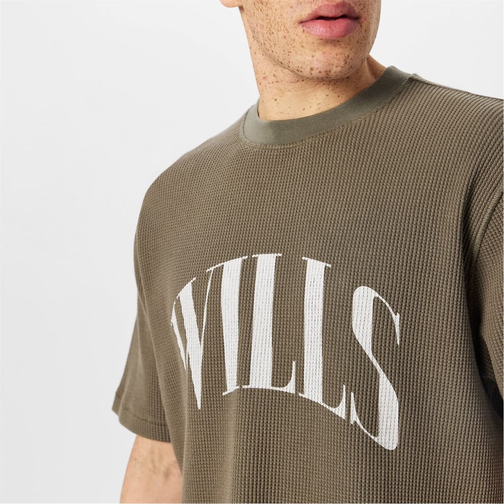This Jack Wills top is a casual staple featuring a regular fit and a distinctive waffle pattern. The short sleeves and crew neck design offer comfort and style. Embellished with graphic lettering and a logo, it adds a touch of brand identity to your wardrobe. -