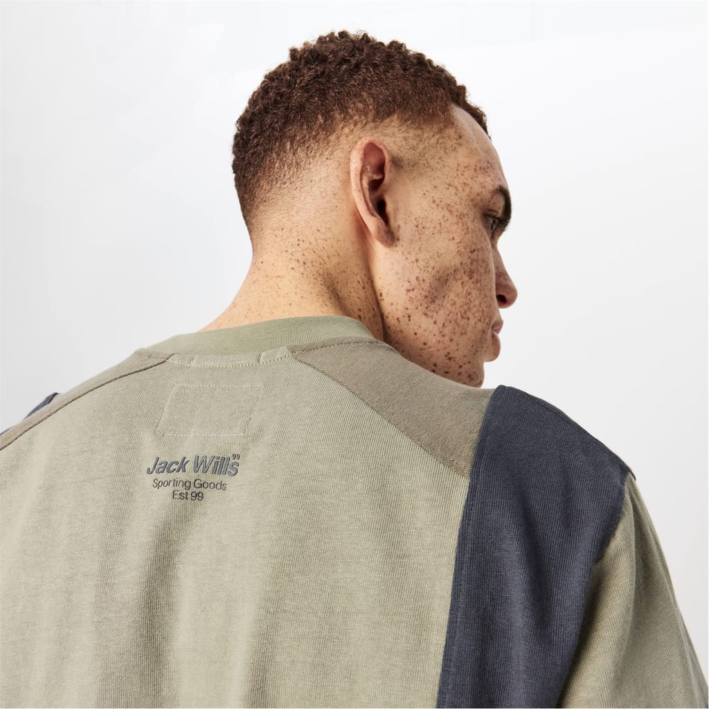 This Jack Wills top from the casual collection features a regular fit and short sleeves. The crew neck design is complemented by a stylish color block pattern. A subtle logo embellishment adds a touch of brand identity to this versatile piece. -