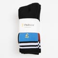 Discover Farah's crew socks, featuring a stylish stripe pattern. These socks are designed with a comfortable fit and adorned with the iconic logo, adding a touch of brand recognition. Perfect for those who appreciate both style and quality in their everyday essentials. -