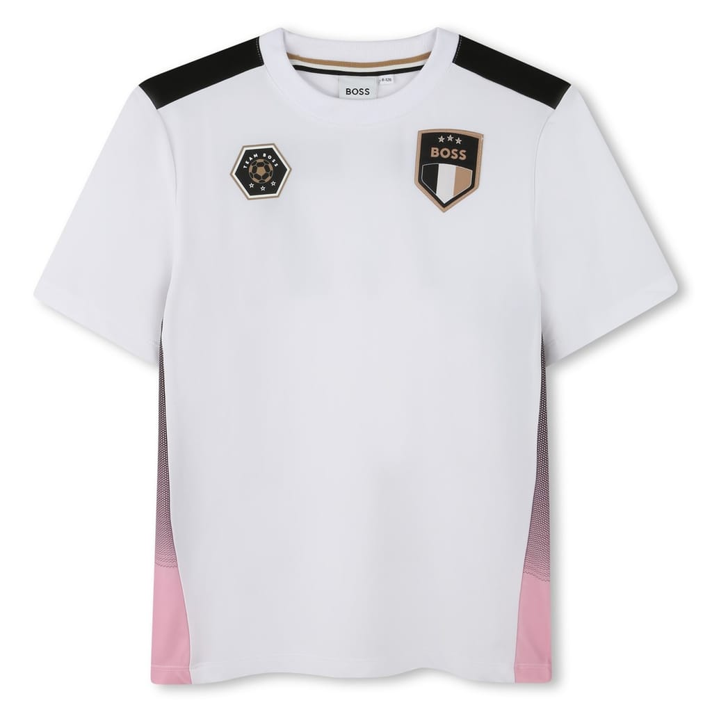 This Boss top for juniors features a regular fit and a classic crew neck. The short sleeves and solid pattern offer a timeless look, while the logo patch adds a distinctive touch. -