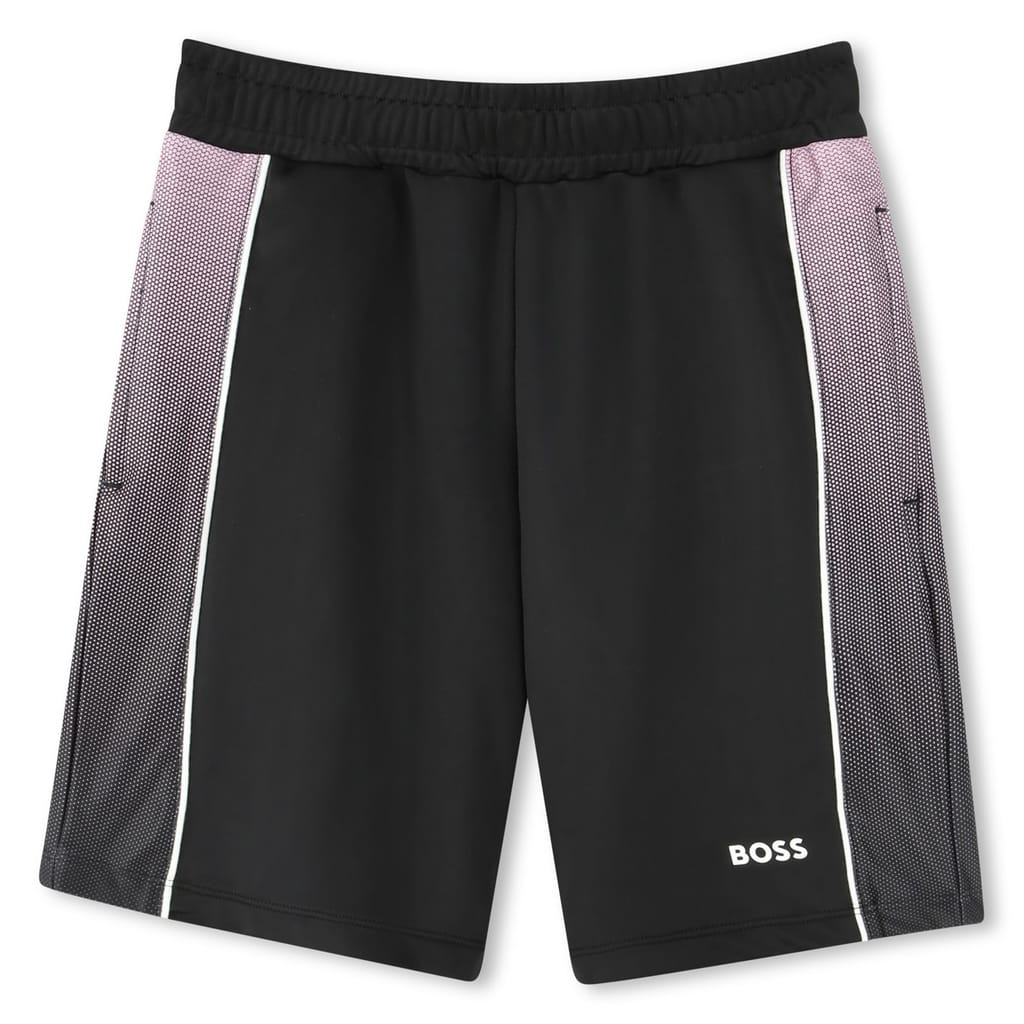 These junior Boss shorts are a stylish addition to any casual collection. Featuring a color block pattern, they are designed with a comfortable drawstring closure and an elasticated waistband. The Bermuda shorts style offers a relaxed fit, while the logo embellishment adds a touch of brand identity. -