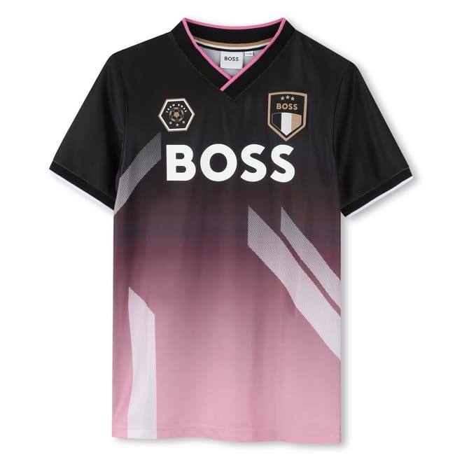 This Boss top for juniors features a gradient print and a regular fit. The short sleeves and logo embellishment add a stylish touch, making it a versatile addition to any wardrobe. -