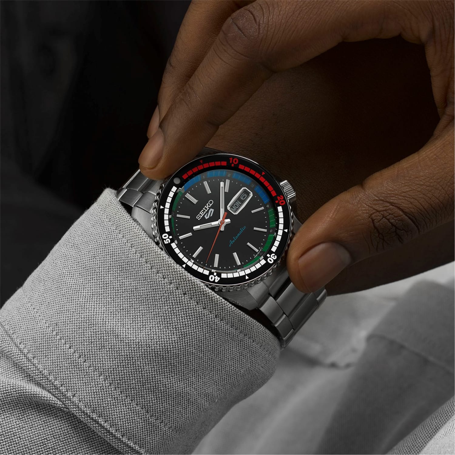 Seiko presents a sophisticated wrist watch designed for sporting activity enthusiasts. This analogue timepiece features a striking black dial, complemented by a durable steel bracelet strap. Ideal for those seeking a blend of style and functionality, this watch is a testament to Seiko's commitment to quality and precision. -
