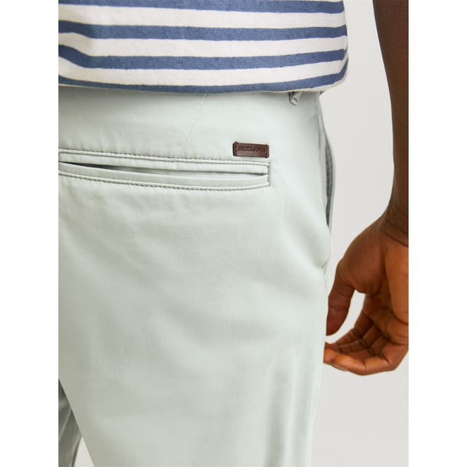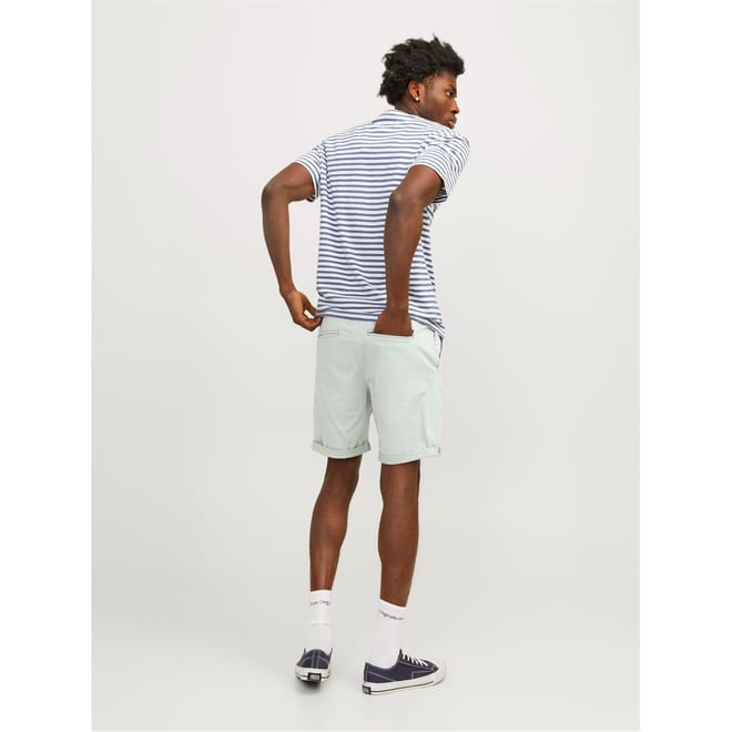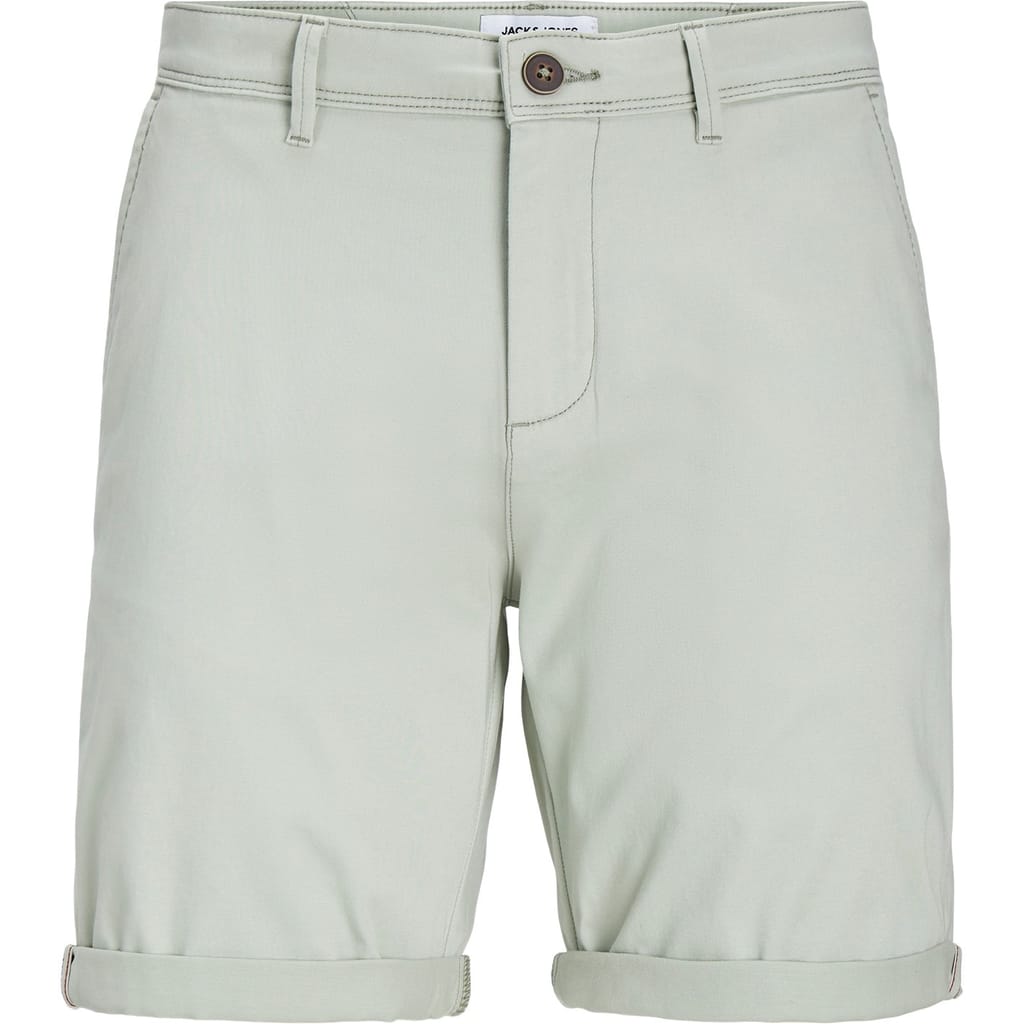 These Jack & Jones chino shorts are crafted from woven material, offering a solid pattern for a sleek look. Featuring a button and zip fly closure, they are designed with practical pockets and a subtle logo embellishment. Perfect for a casual style, these shorts provide both comfort and functionality. -