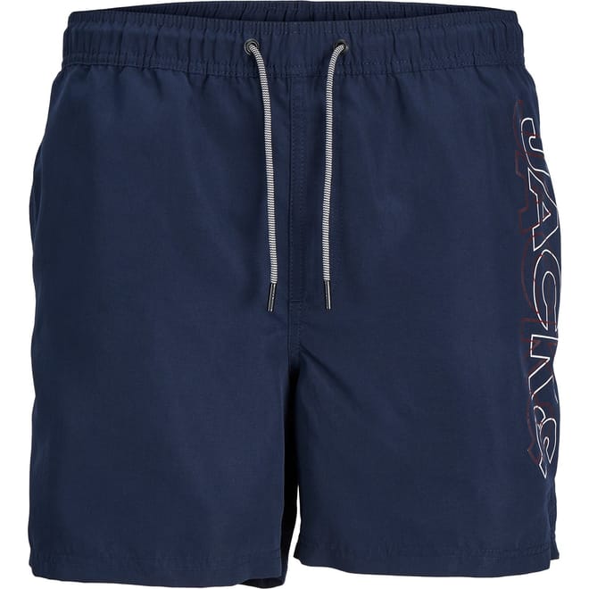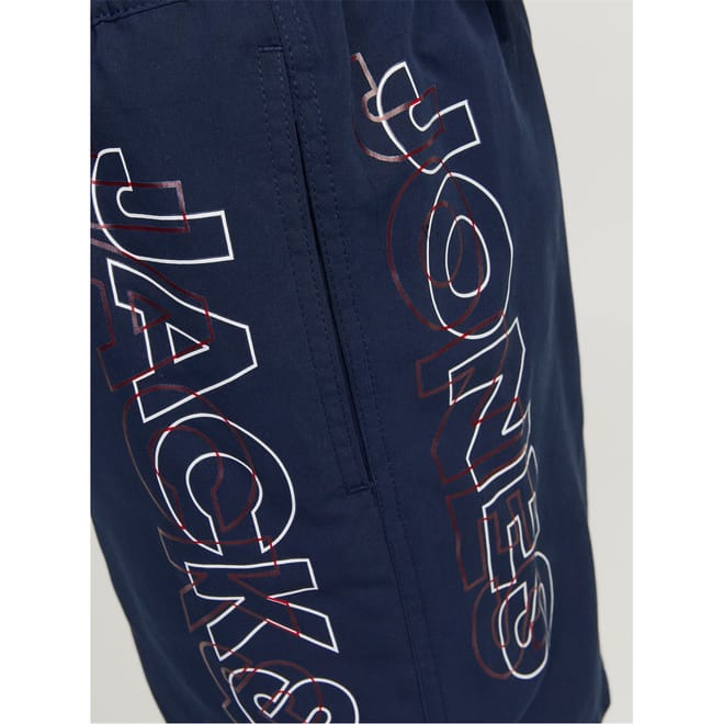 Dive into style with Jack & Jones swimwear, designed for swimming enthusiasts. This swim bottom features a drawstring closure for a secure fit, adorned with a graphic print and distinctive lettering. The logo embellishment adds a touch of brand identity, making it a standout piece in any swimming collection. -