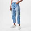 Discover the Polo Ralph Lauren mom jeans, featuring a tapered fit for a modern silhouette. These jeans come with a zip fly and button closure, ensuring a secure fit. The design is enhanced with a logo and logo patch, adding a touch of brand identity. The classic five-pocket style offers practicality and timeless appeal. -