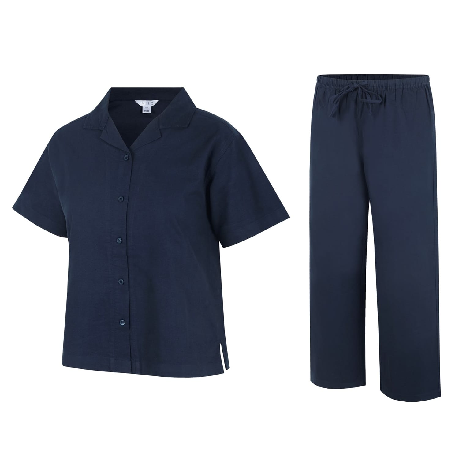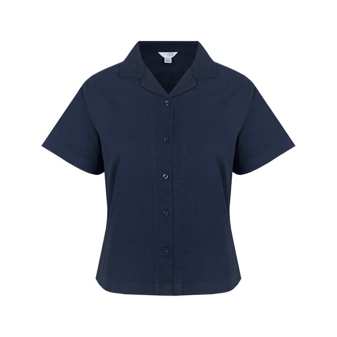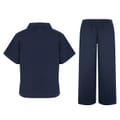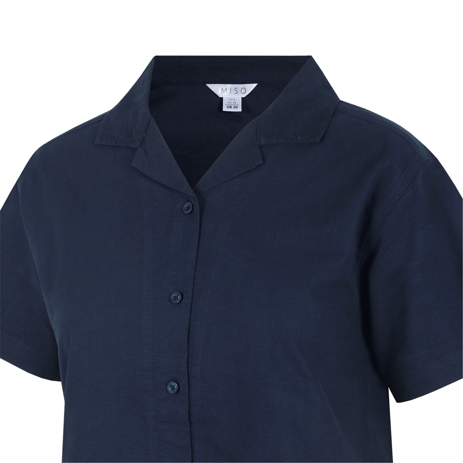 Elevate your wardrobe with this Miso top and pant set. The shirt features a collared neck and plain short sleeves, offering a classic and versatile look. Paired with casual trousers, this set is perfect for a polished yet relaxed style. Ideal for various occasions, it combines comfort and elegance effortlessly. -