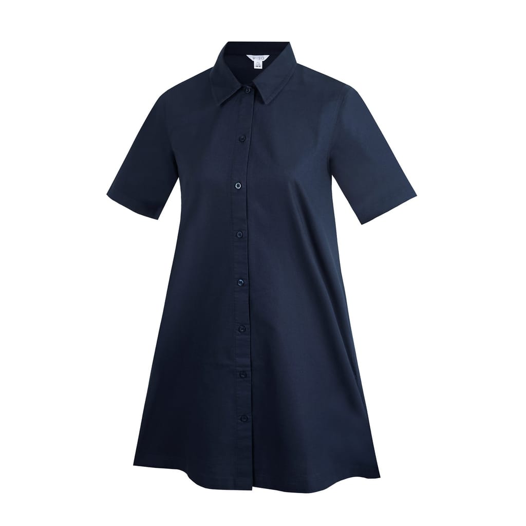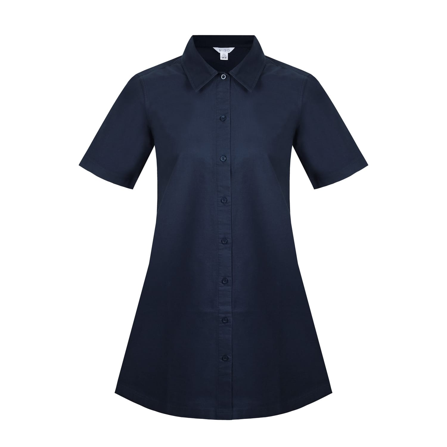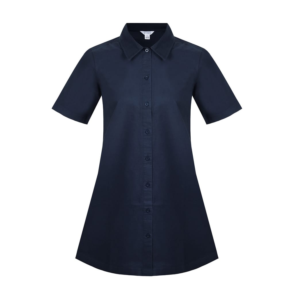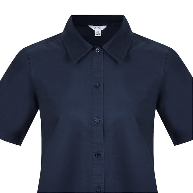 The Miso shirtdress is a stylish mini dress featuring a collared neck and a point collar. Crafted in a solid pattern, it offers a regular fit with a button closure. The dress is designed with a straight hem and short sleeves, making it a versatile addition to any wardrobe. -