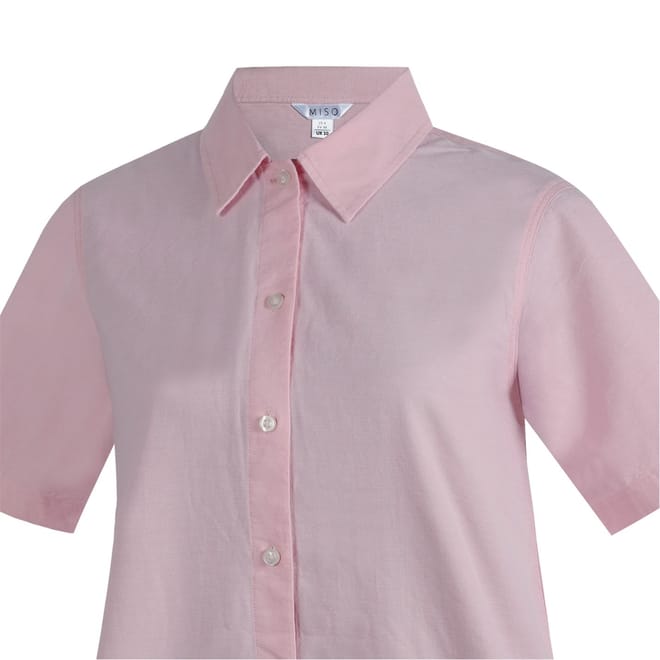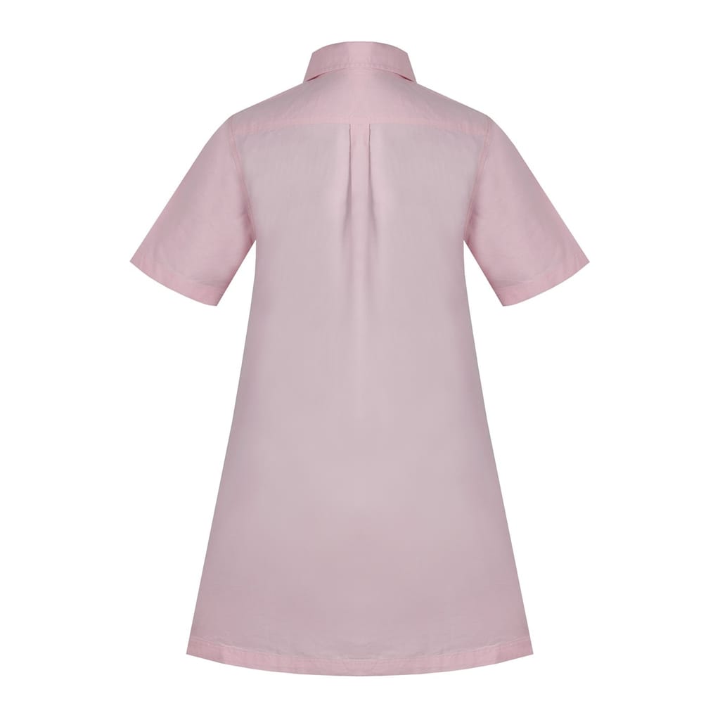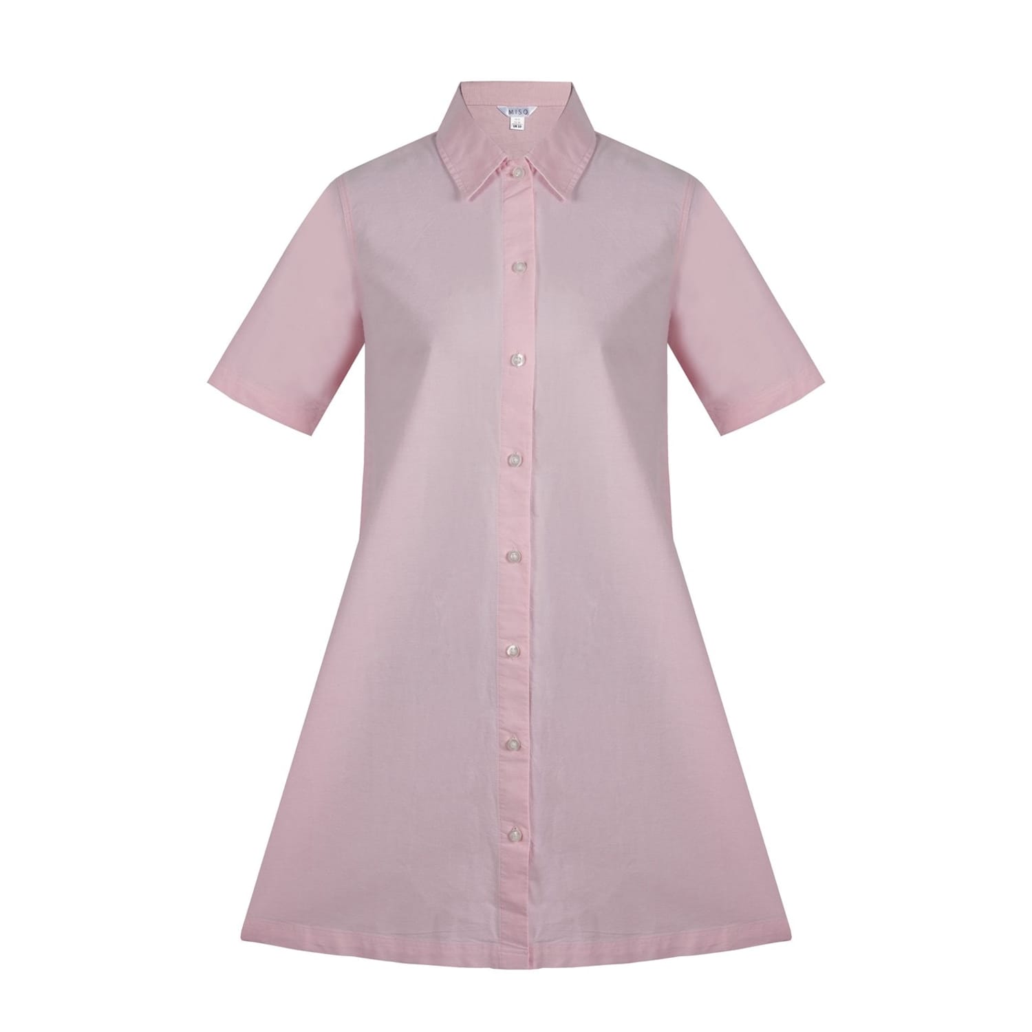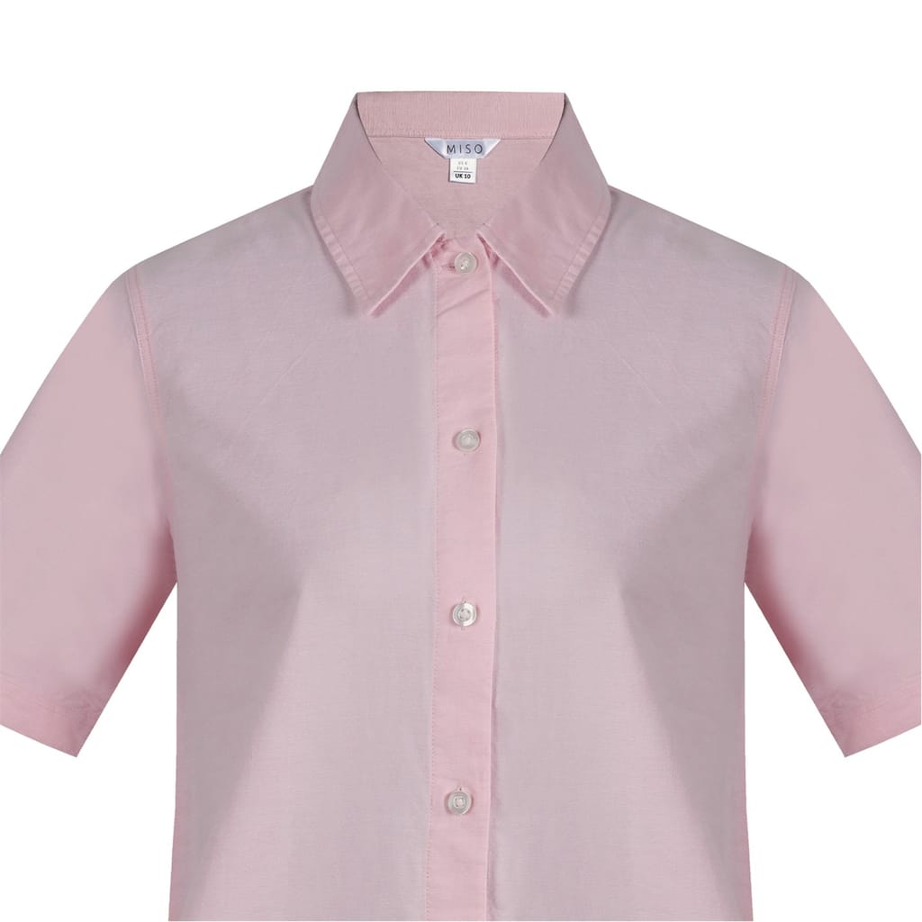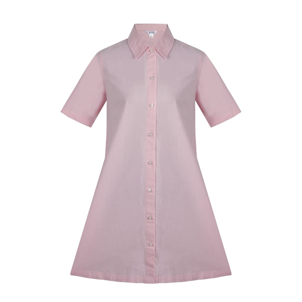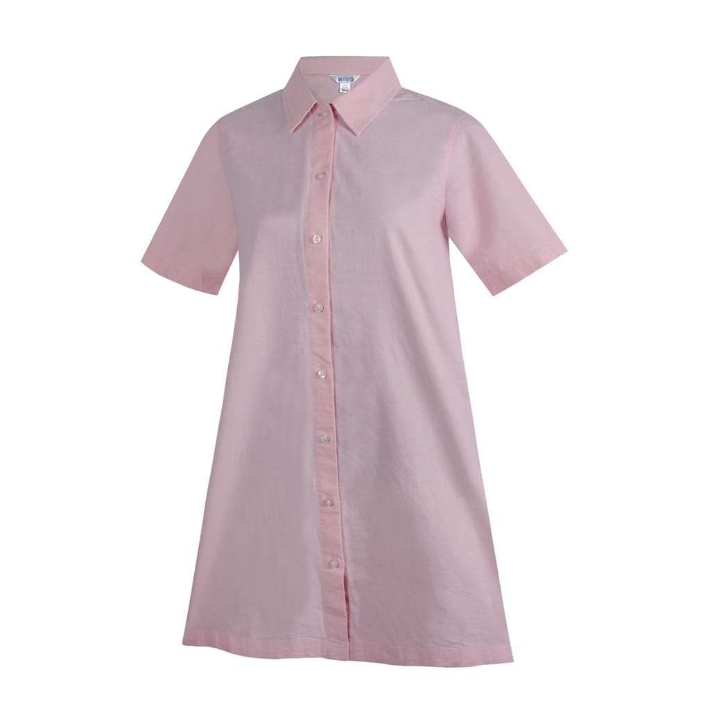 The Miso shirtdress is a sophisticated knee-length oxford piece, featuring a collared neck and a point collar. Its solid pattern and straight hem offer a classic look, while the short sleeves and button closure add practicality. This dress is perfect for those seeking a timeless style with a touch of elegance. -