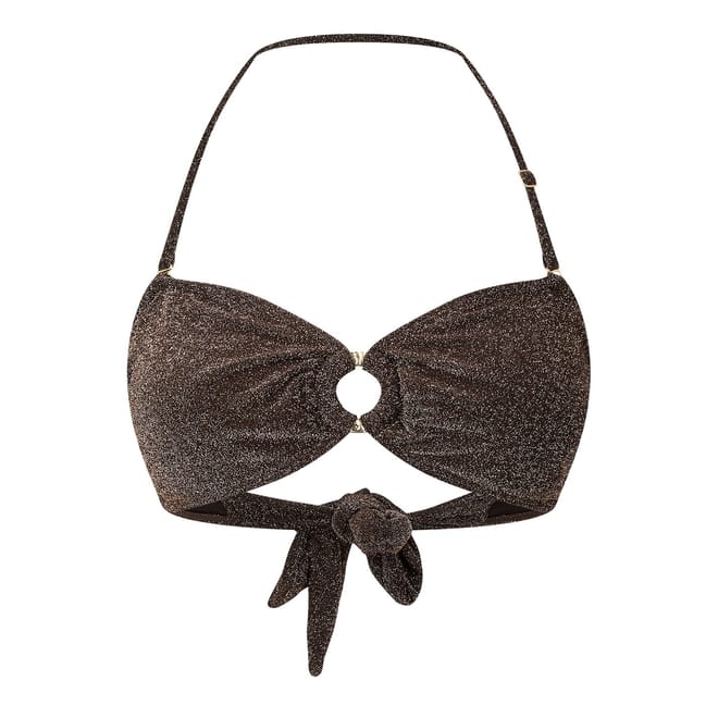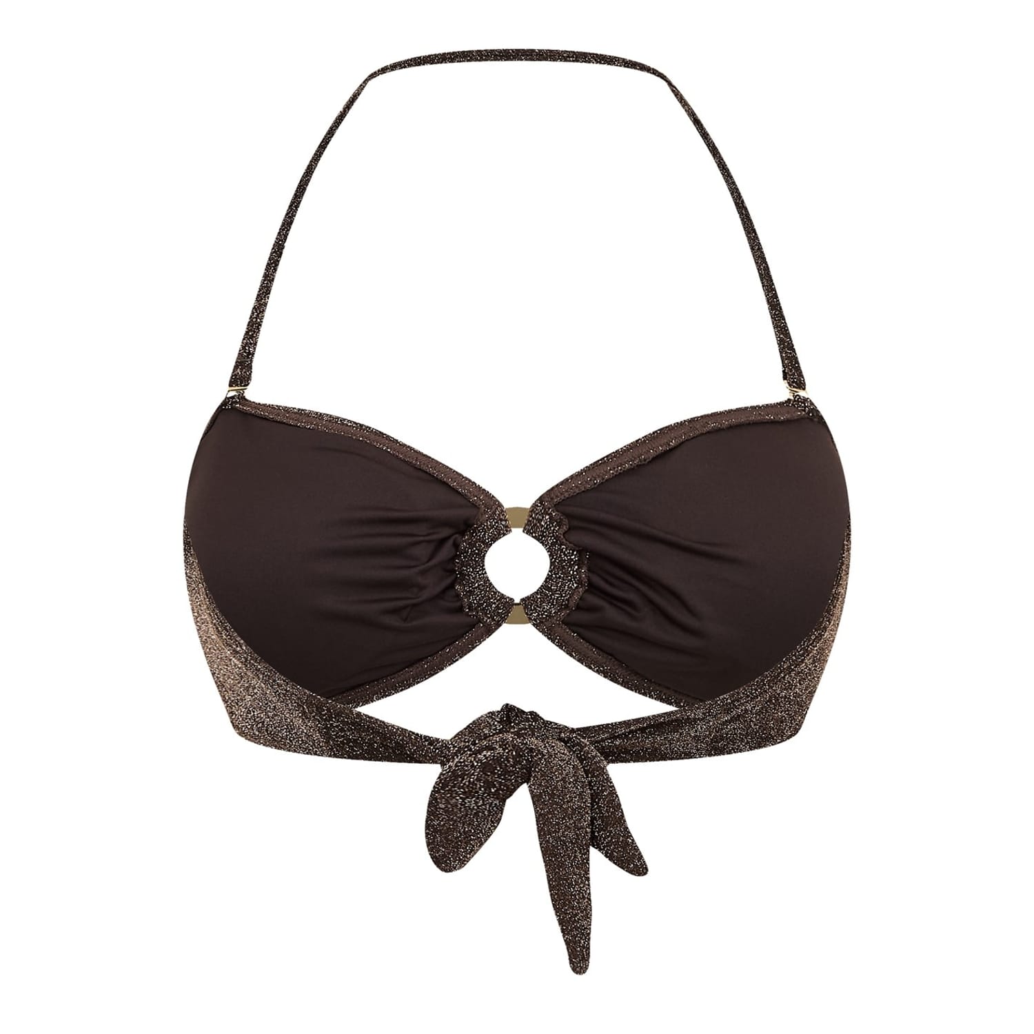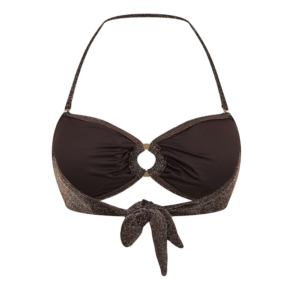 Discover the Biba bandeau bikini swim top, a standout piece in swimwear. This swim top features a tie closure for a secure fit and is adorned with glitter embellishments, adding a touch of sparkle to your swimming collection. Perfect for those who appreciate style and functionality in their swimwear. -
