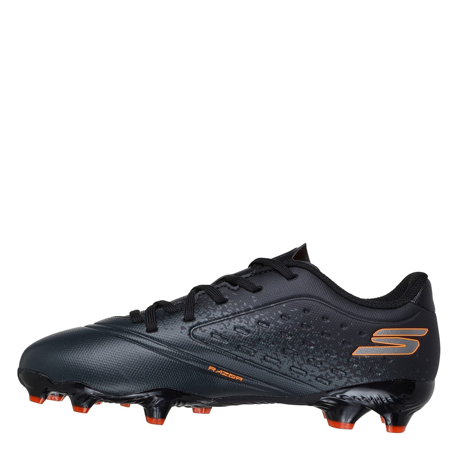 Seconds count on the pitch, so Sketchers Razor Firm Ground Football Boots are engineered to give your little ones the edge when it counts most. The responsive TPU plate delivers exceptional agility, whilst the traction pattern and anatomically designed heel counter guarantee superior grip and stability for bursts of pace. Finished with a supportive Hyper Burst Pro sock liner to maximise comfort, watch your superstar show their flair in these football boots.