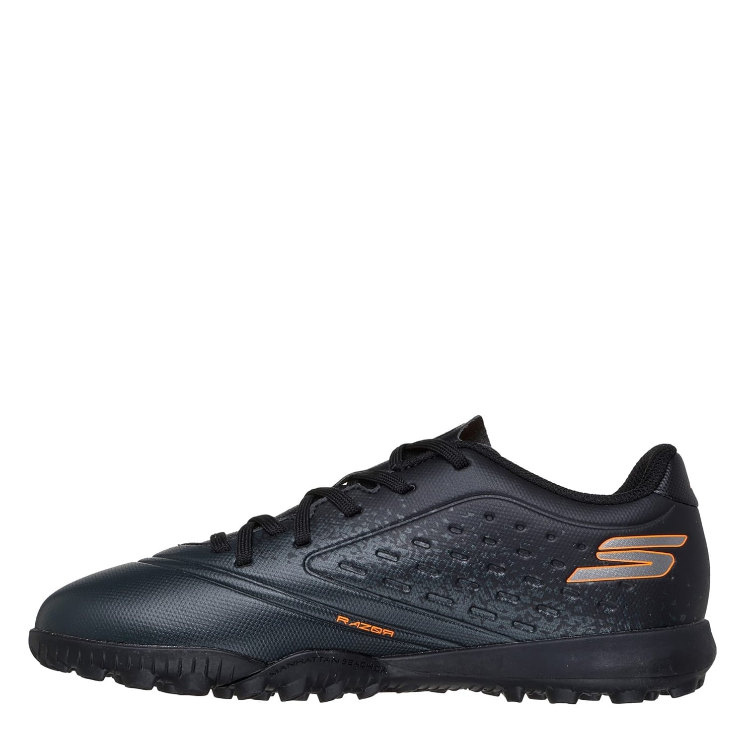 Seconds count on the pitch, so Sketchers Razor Astro Turf Football Boots are engineered to give your little ones the edge when it counts most. The responsive rubber bottom helps them to start, stop and accelerate in all directions, whilst the traction pattern and anatomically designed heel counter guarantee superior grip and stability for bursts of pace. Finished with a supportive Hyper Burst Pro sock liner to maximise comfort, help your superstar start on the front foot in these football boots.