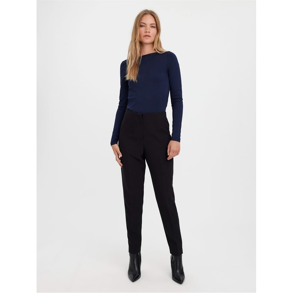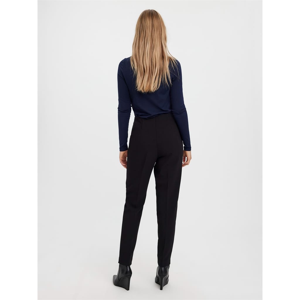 Vero Moda trousers offer a stylish and practical choice for any wardrobe. Featuring a zip fly and button closure, these pants are designed for ease and comfort. The addition of pockets enhances their functionality, making them a versatile option for various occasions. -