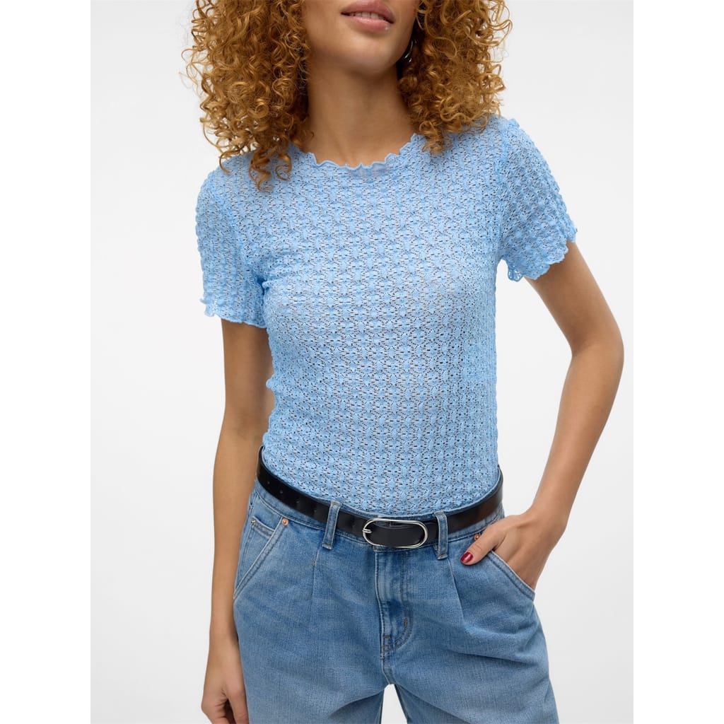 This Vero Moda blouse features a textured pattern, adding depth to its design. The crew neck offers a classic touch, while the long sleeves provide coverage and style. Perfect for a versatile wardrobe addition, this top reflects a blend of comfort and elegance. -