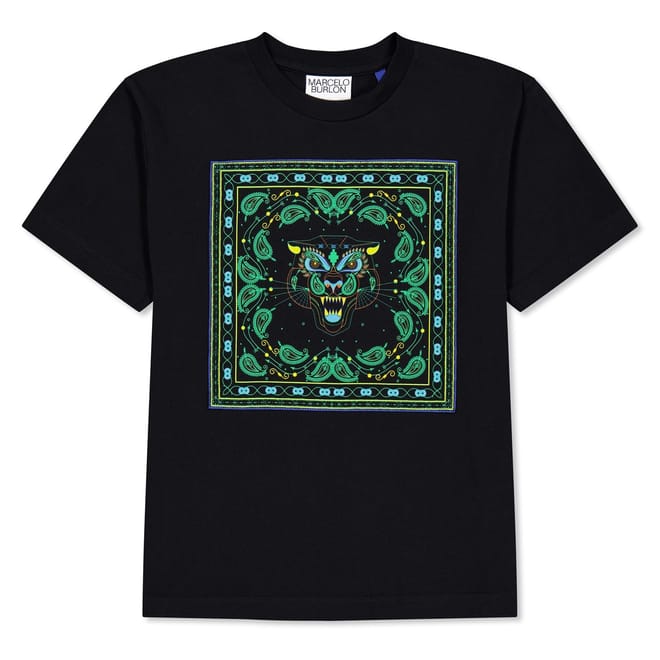 This Marcelo Burlon t-shirt is perfect for casual occasions. Featuring a striking bandana print, it showcases a crew neck and regular fit for comfort and style. The short sleeves add to its relaxed appeal, making it a versatile choice for various settings. -