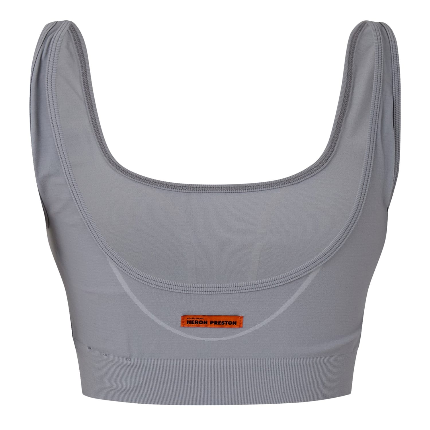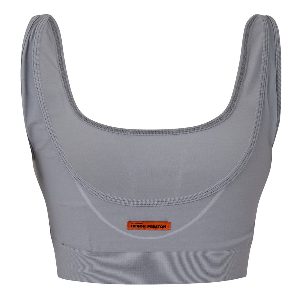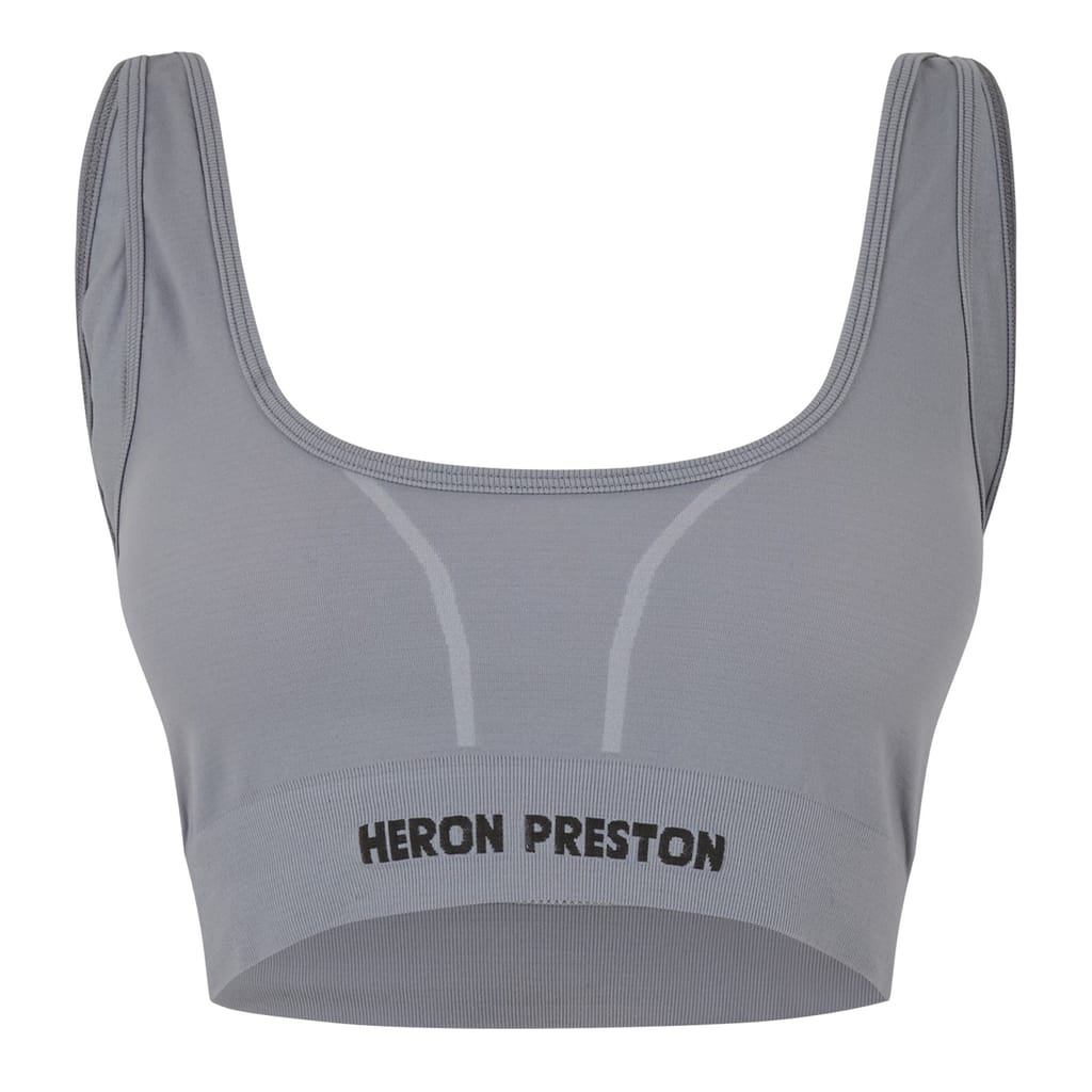 Discover the Heron Preston sports bra, a stylish addition to your sporting activity collection. This sleeveless top features a scoop neck and a cropped fit, offering both comfort and functionality. The design is completed with a prominent logo embellishment, making it a distinctive piece for your activewear wardrobe. -