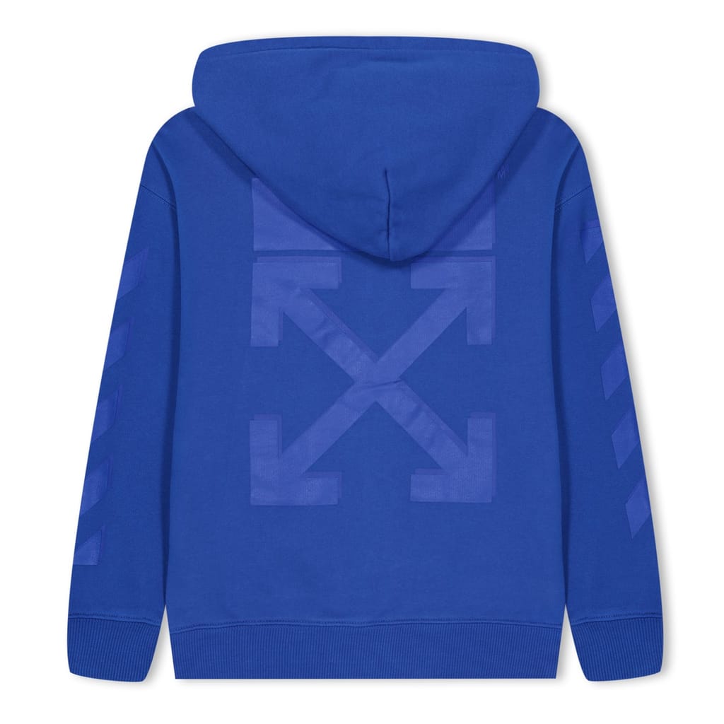 This Off-White sweatshirt jacket features a solid pattern and a regular fit, offering a stylish yet comfortable look. The jacket is designed with a zipper closure, ribbed cuffs, and a ribbed hem, ensuring a snug fit. The iconic logo embellishment adds a touch of brand identity, making it a distinctive piece in any wardrobe. -