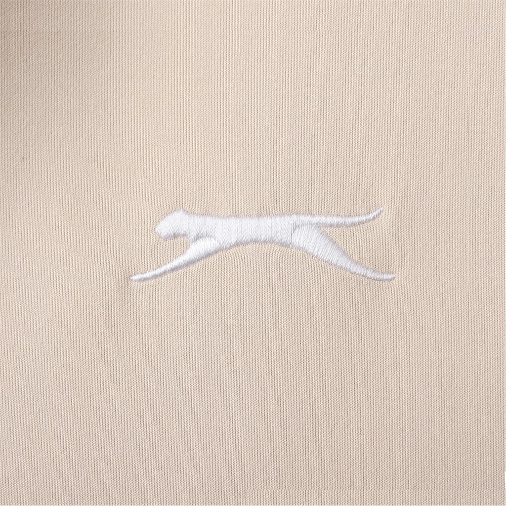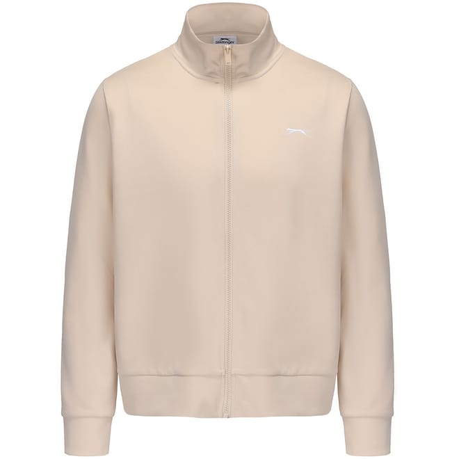 This Slazenger softshell jacket features a full zipper closure and a mock neck design. It offers a regular fit with ribbed cuffs and hem for added comfort. The solid pattern is complemented by an embroidered logo, adding a touch of brand identity. -
