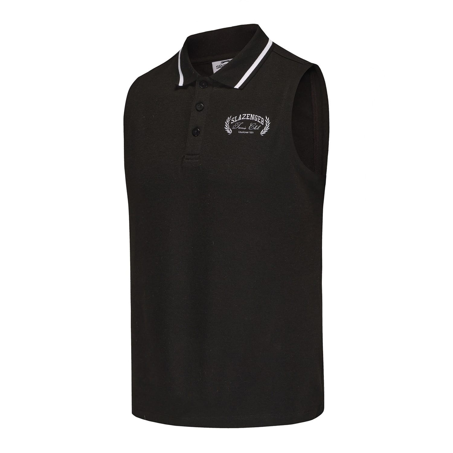 This Slazenger top is a semi-formal piece featuring a polo collar and short sleeves. It showcases a graphic print and an embroidered logo, adding a touch of style. The button closure ensures a neat fit, making it a versatile addition to your wardrobe. -