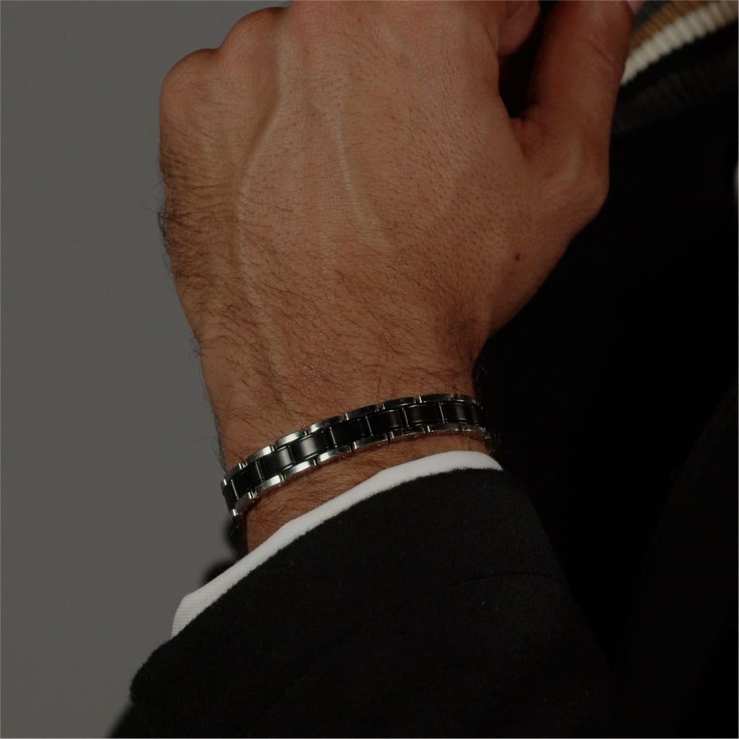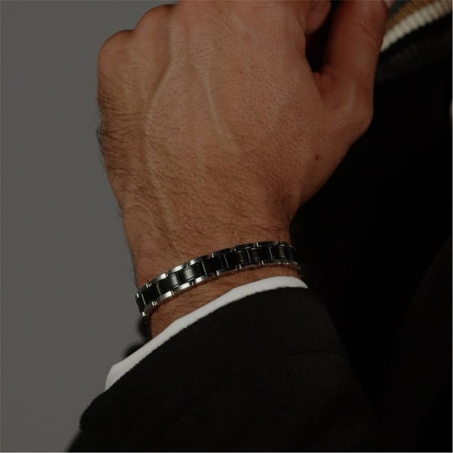 BOSS gents bracelet from the Metal Link Essentials collection. Stainless steel and black IP bracelet with magnetic closure. Inner circumference 200 mm.