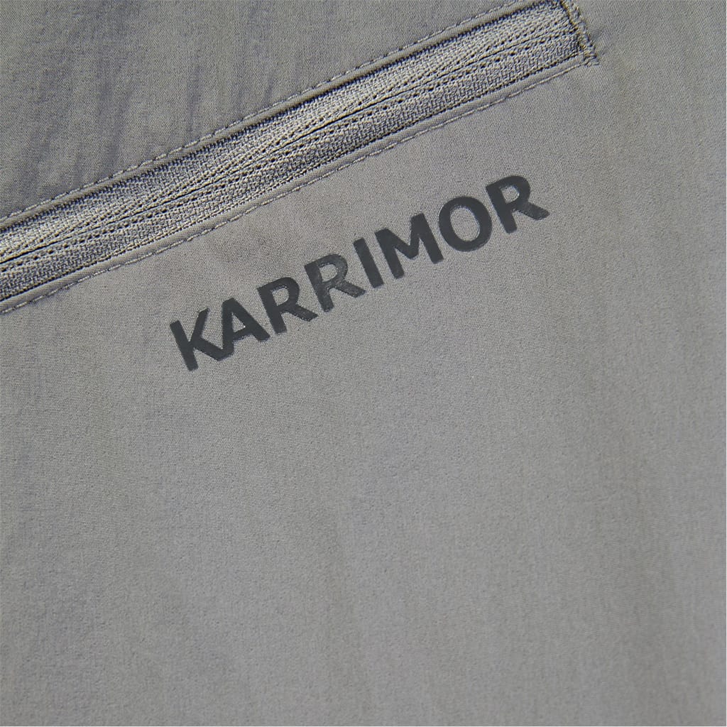 Karrimor pants offer a practical design with a zip fly and button closure. These convertible pants feature a logo and zipped pocket, providing both style and functionality. Ideal for those seeking versatile and comfortable wear. -