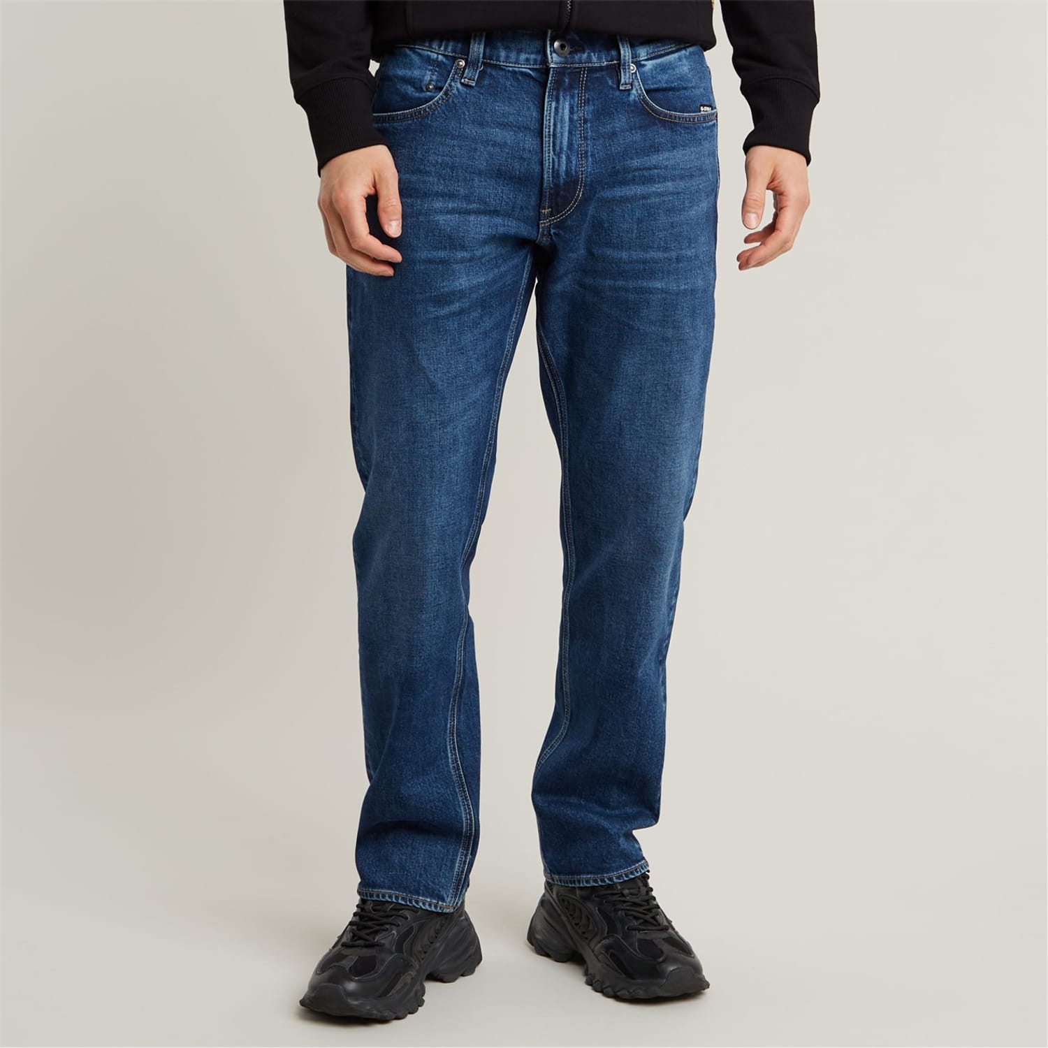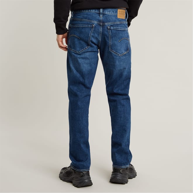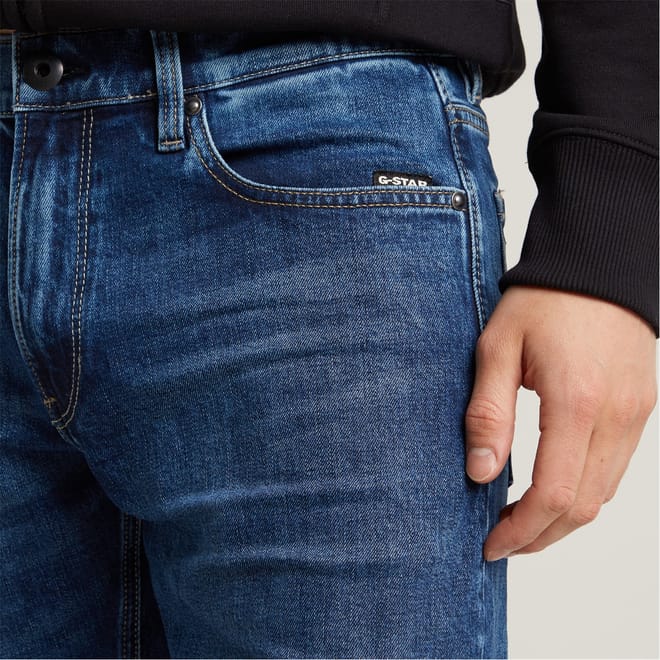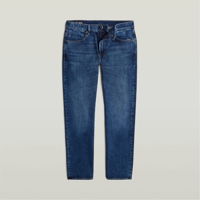 The design of the Mosa jeans shows a straight fit with a narrow leg. These stretch denim jeans have a zip fly.