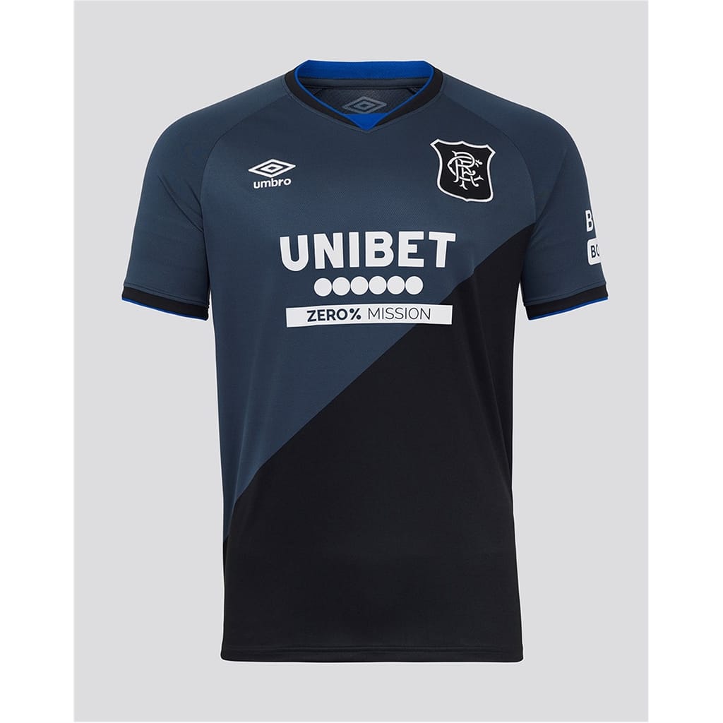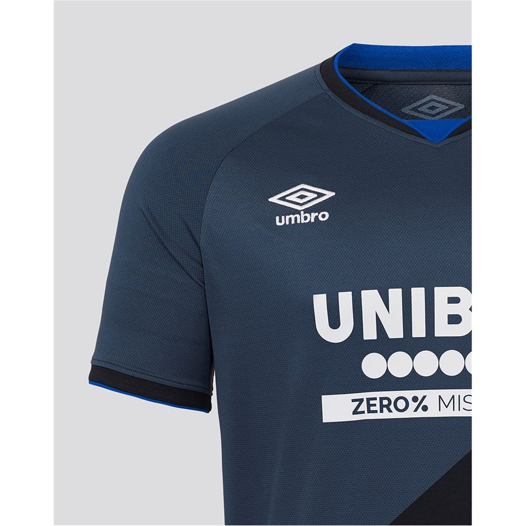 Stand out with pride in the Umbro Rangers Third Shirt for the 2025/26 season. This replica shirt features lightweight, breathable fabric with moisture-wicking technology to keep you cool, finished with the signature club badge for a classic touch. Perfect for matchdays, casual outings, or showing your Rangers support wherever you go.