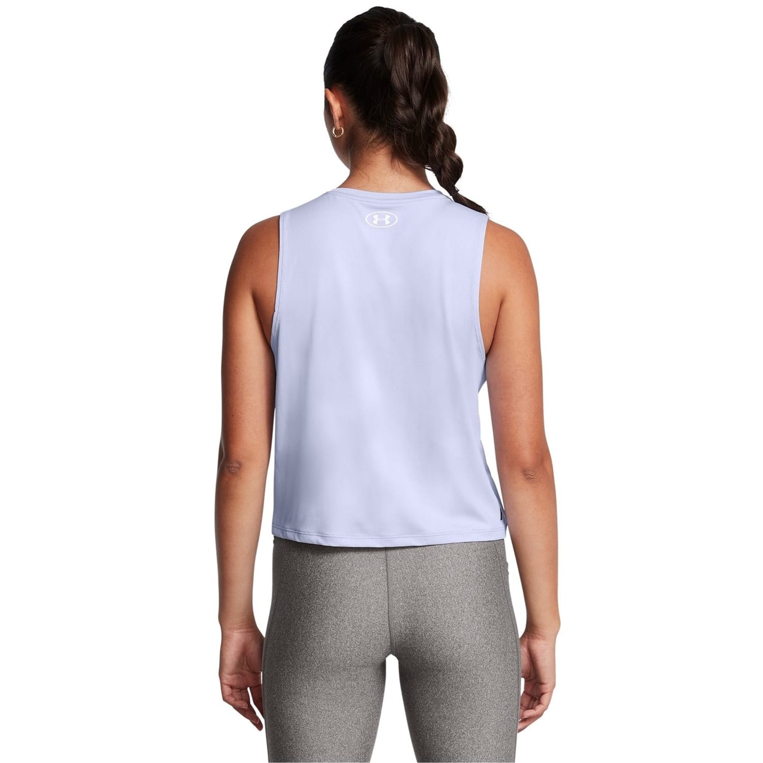 Elevate your workout wardrobe with the Under Armour tank top, a perfect blend of style and function. Designed for activewear collections, this sleeveless vest features a crew neck and cropped length, providing a sleek fit ideal for training. Crafted with performance attributes, it is a must-have for gym enthusiasts seeking comfort and mobility. -