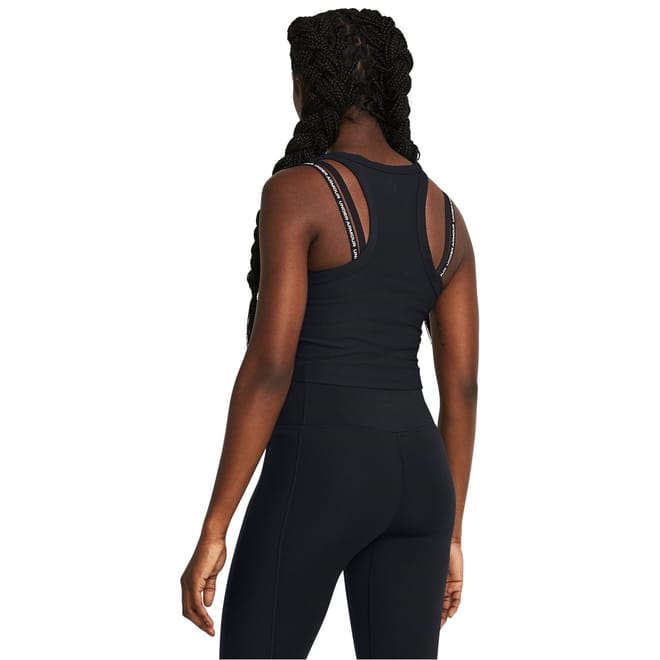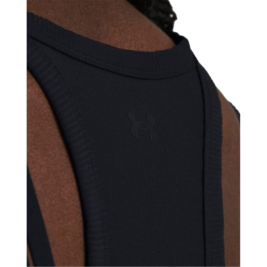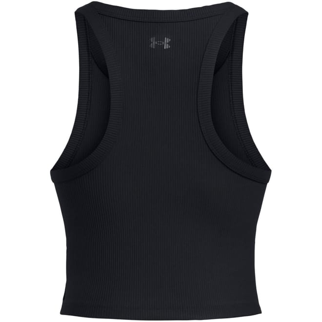 This Under Armour tank top is ideal for training. Featuring a ribbed pattern and a crew neck, it offers a sleek, sleeveless design. The cropped length and slim fit ensure a comfortable and stylish athletic look, perfect for enhancing your workout wardrobe. -