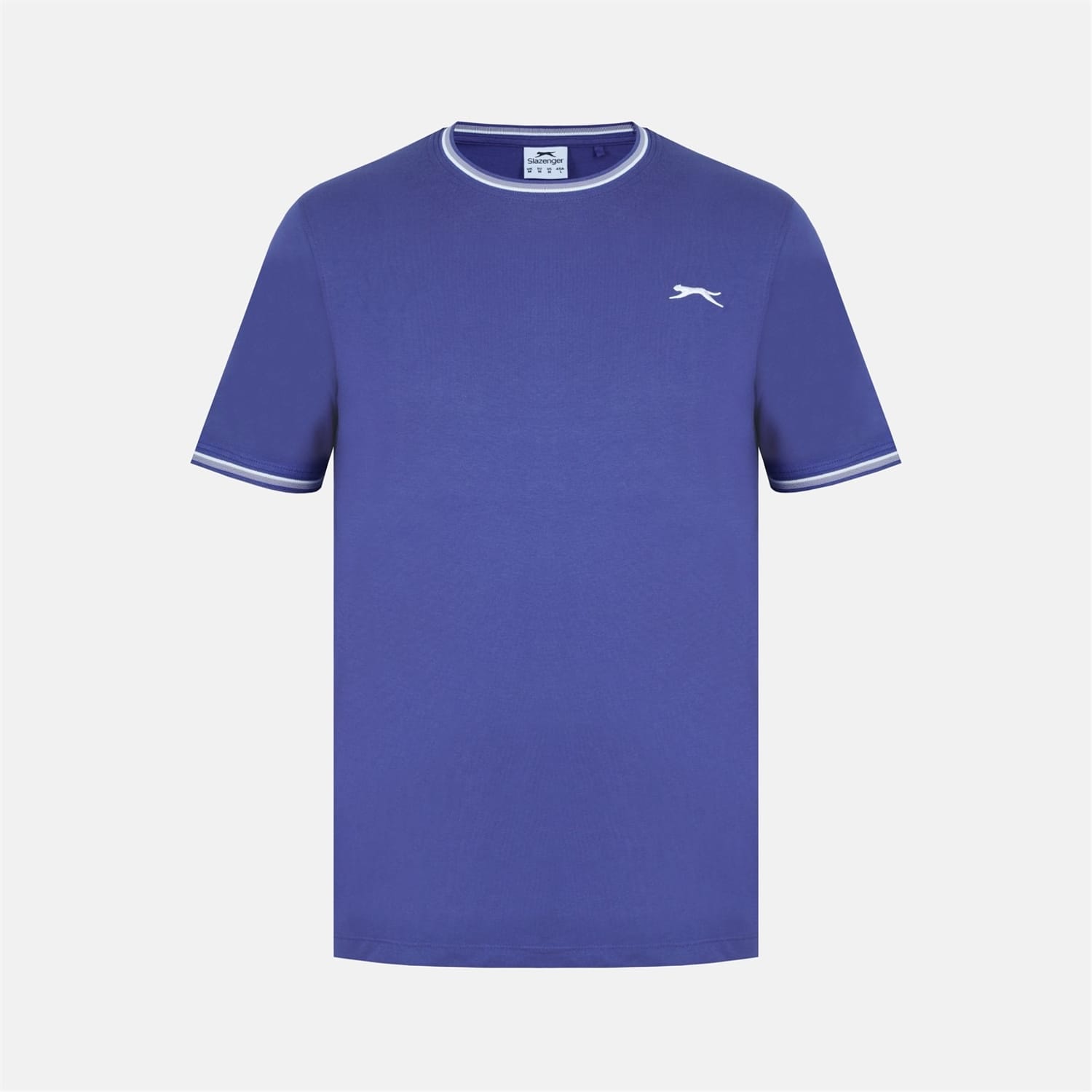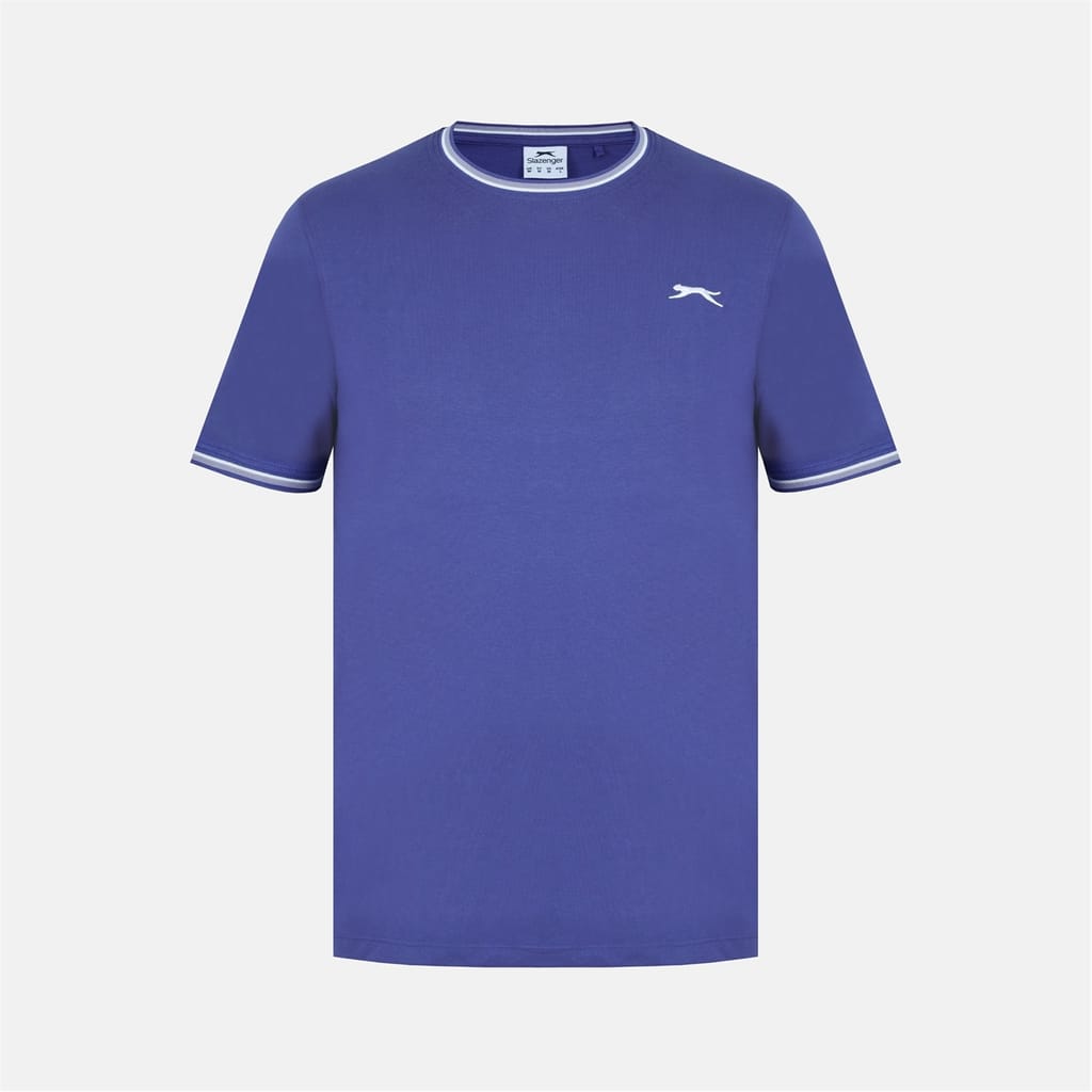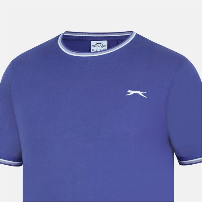 - This Slazenger Tipped T Shirt features short sleeves with a ribbed cuff with tipping for a colour pop. Tipped crew neckline with tipping for a classic look. Comfortable fit and is a lightweight construction. This t shirt is designed with an embroidered 3D logo to the chest for signature Slazenger branding.