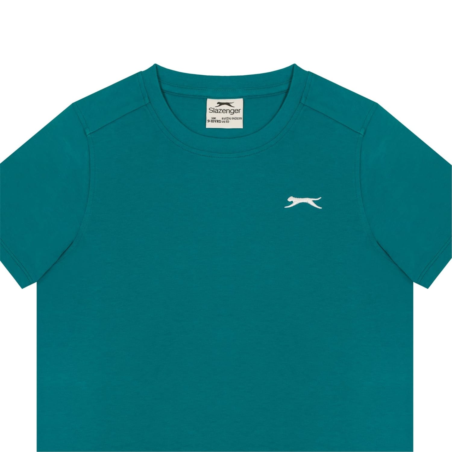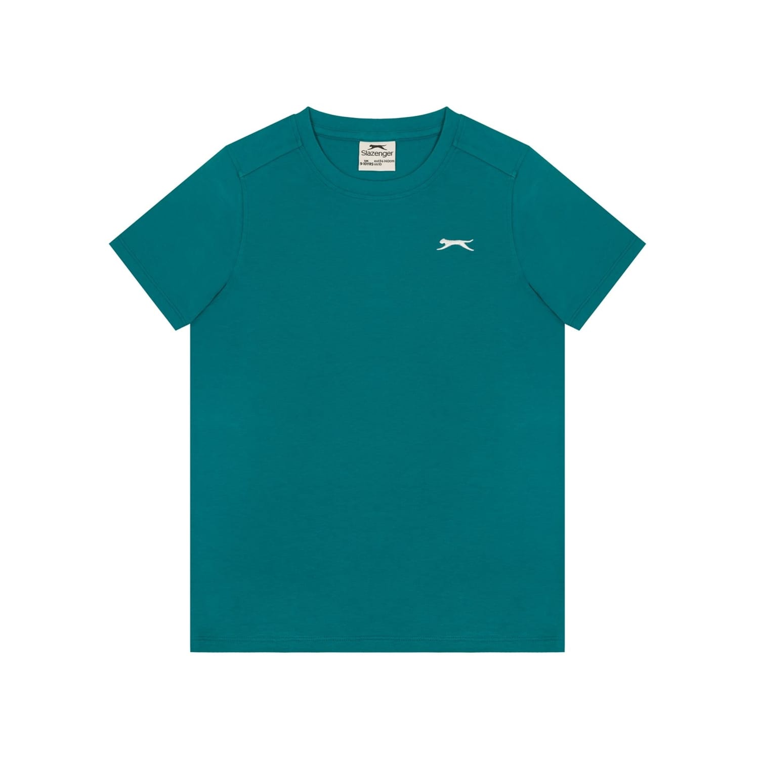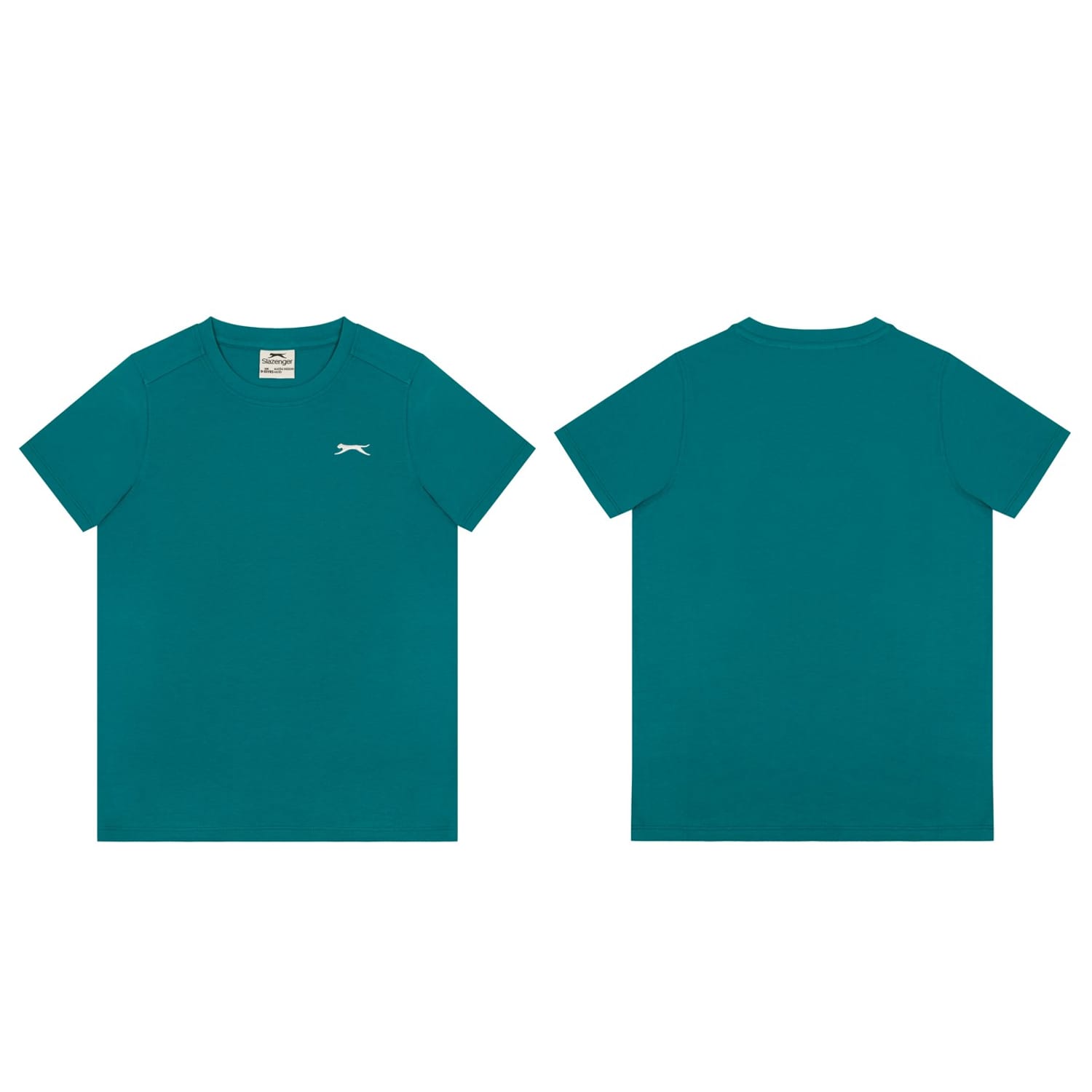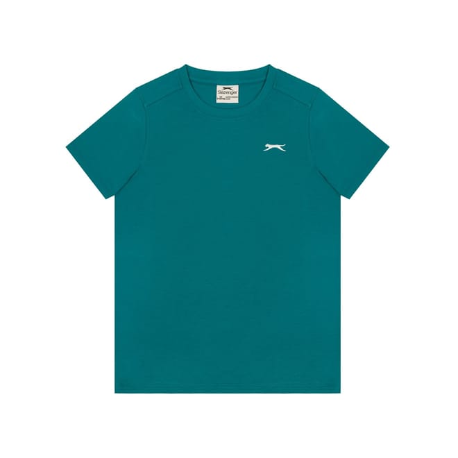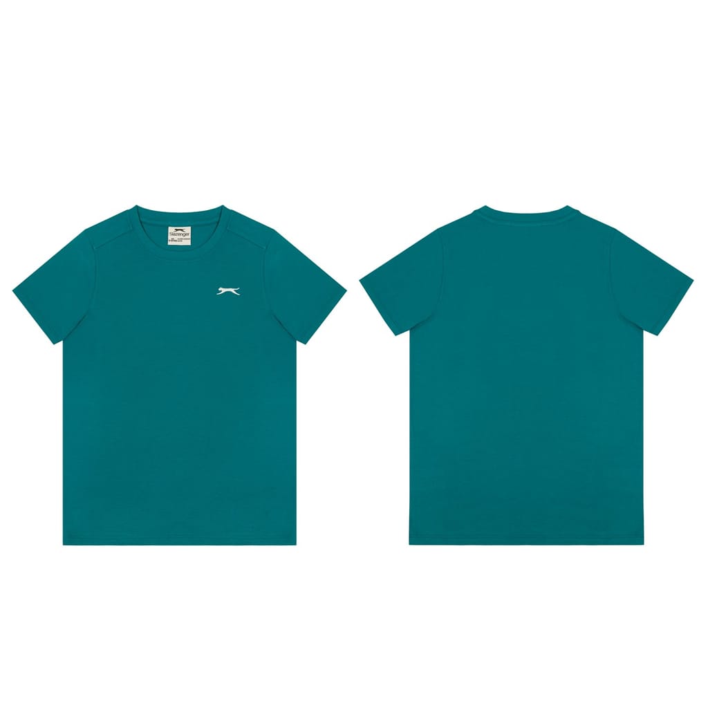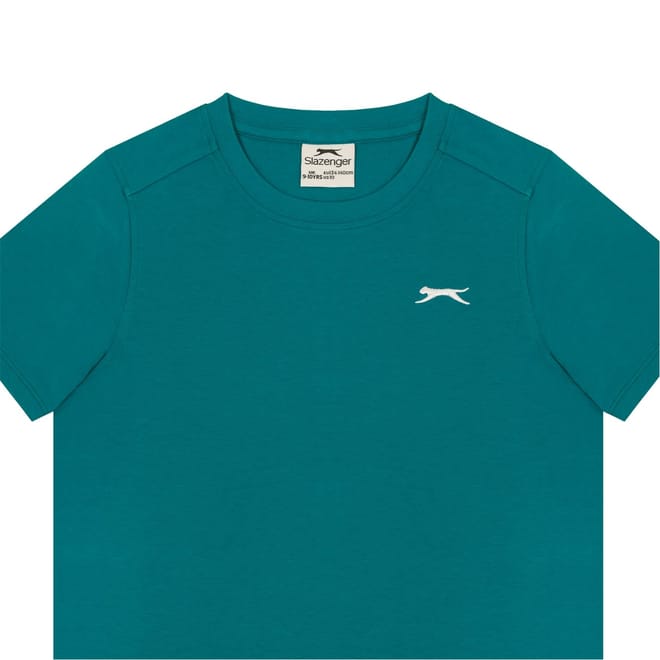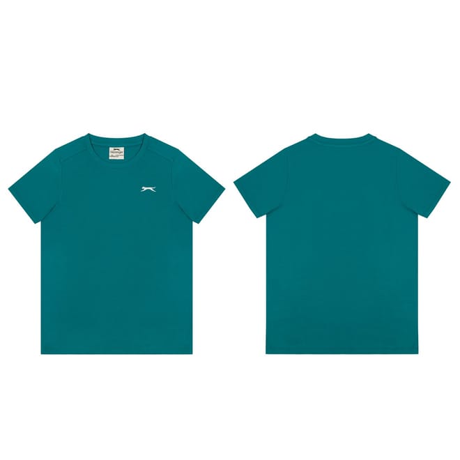 - Sport a casual everyday look with this Slazenger Plain T Shirt. Constructed with a ribbed crew neck and short sleeves for a casually classic look, this staple tee can be worn for leisure, sport or lounging around at home. The Slazenger logo is embroidered on the chest for brand recognition and block colour throughout for a simple and minimal aesthetic.