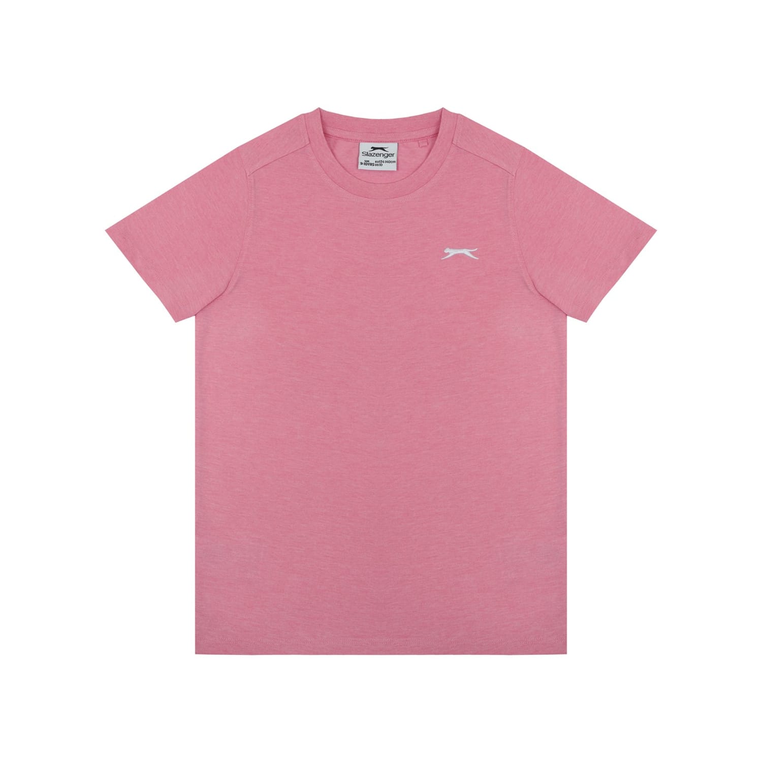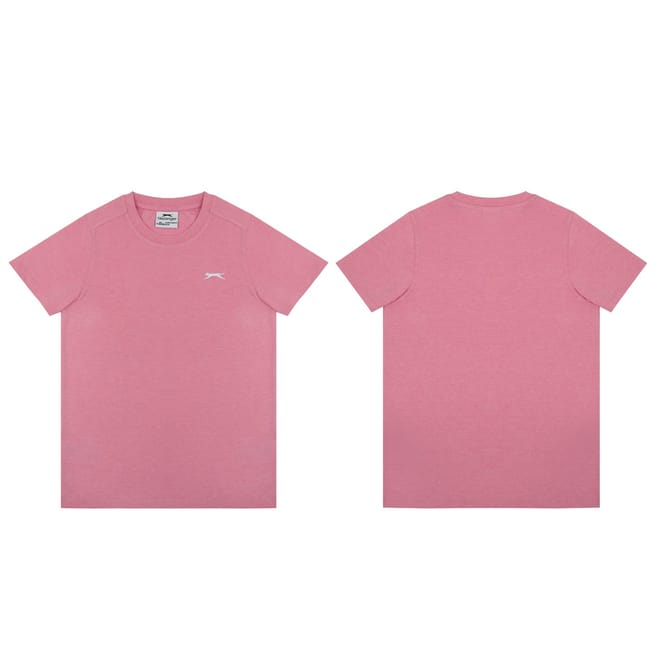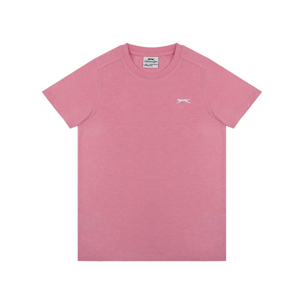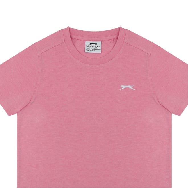 - Sport a casual everyday look with this Slazenger Plain T Shirt. Constructed with a ribbed crew neck and short sleeves for a casually classic look, this staple tee can be worn for leisure, sport or lounging around at home. The Slazenger logo is embroidered on the chest for brand recognition and block colour throughout for a simple and minimal aesthetic.