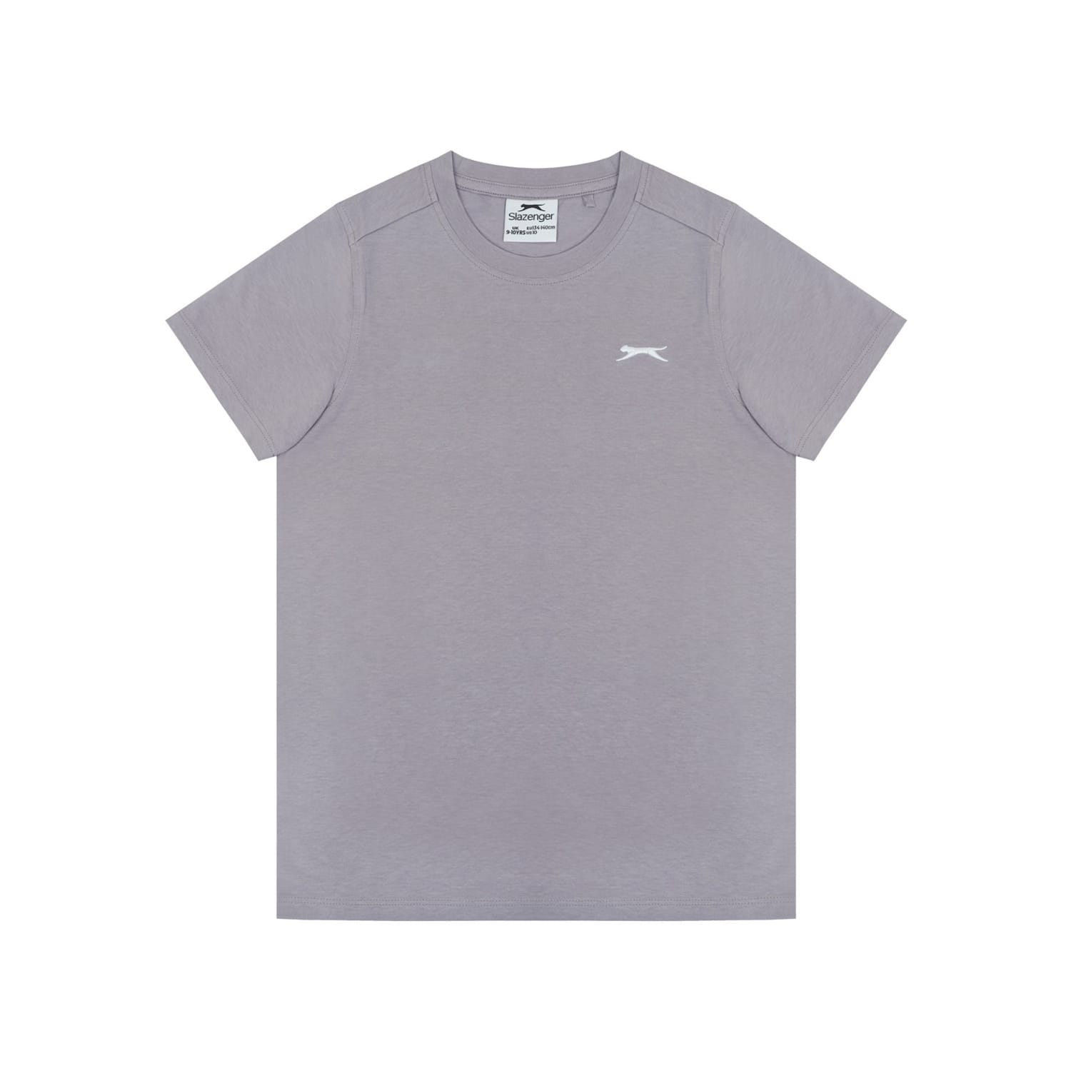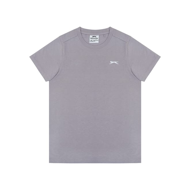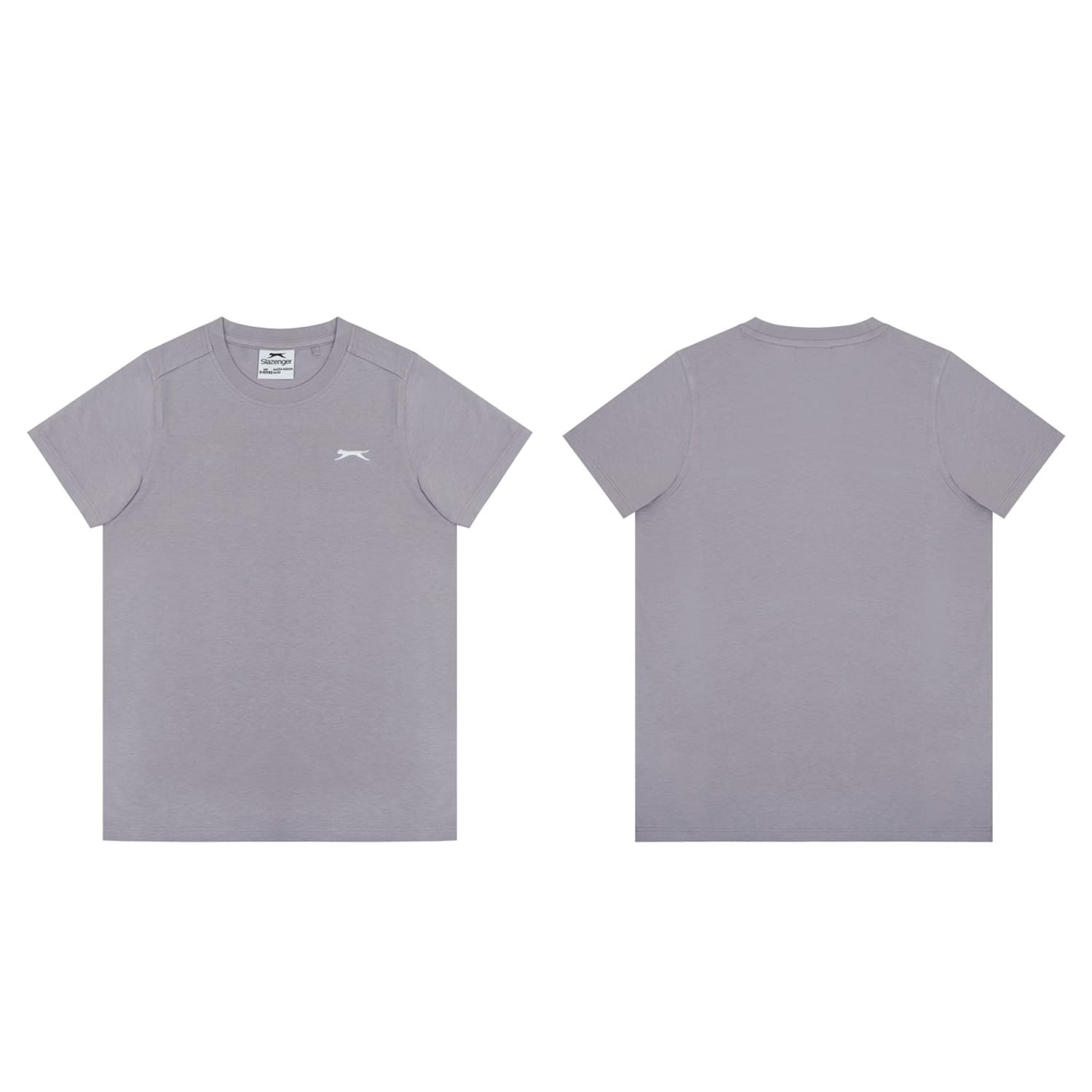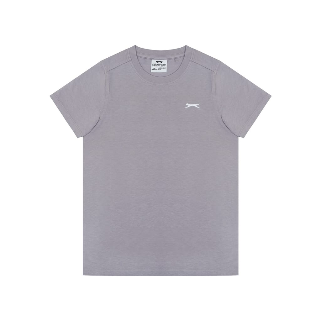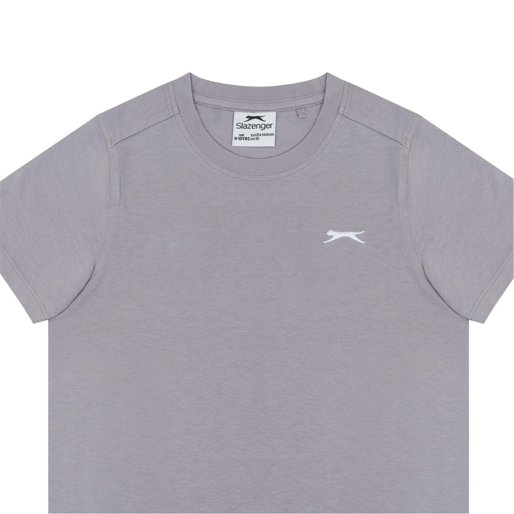 - Sport a casual everyday look with this Slazenger Plain T Shirt. Constructed with a ribbed crew neck and short sleeves for a casually classic look, this staple tee can be worn for leisure, sport or lounging around at home. The Slazenger logo is embroidered on the chest for brand recognition and block colour throughout for a simple and minimal aesthetic.