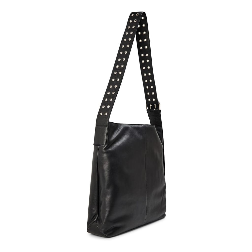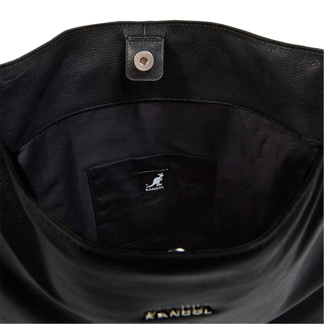 Discover the Kangol tote bag, a stylish accessory featuring a snap button and magnetic closure for secure storage. This shoulder bag is adorned with a logo and stud embellishments, adding a touch of elegance. It also includes a practical pocket for added convenience, making it a versatile choice for any occasion. -