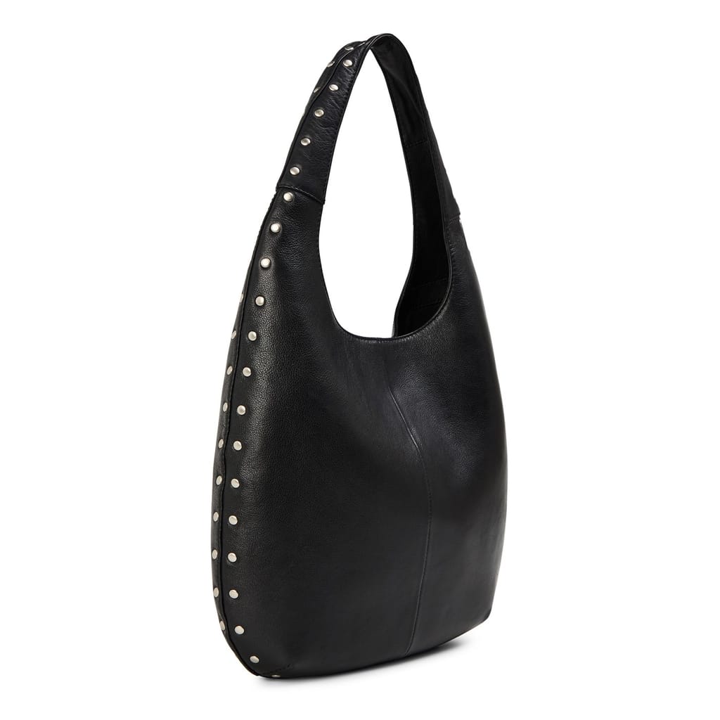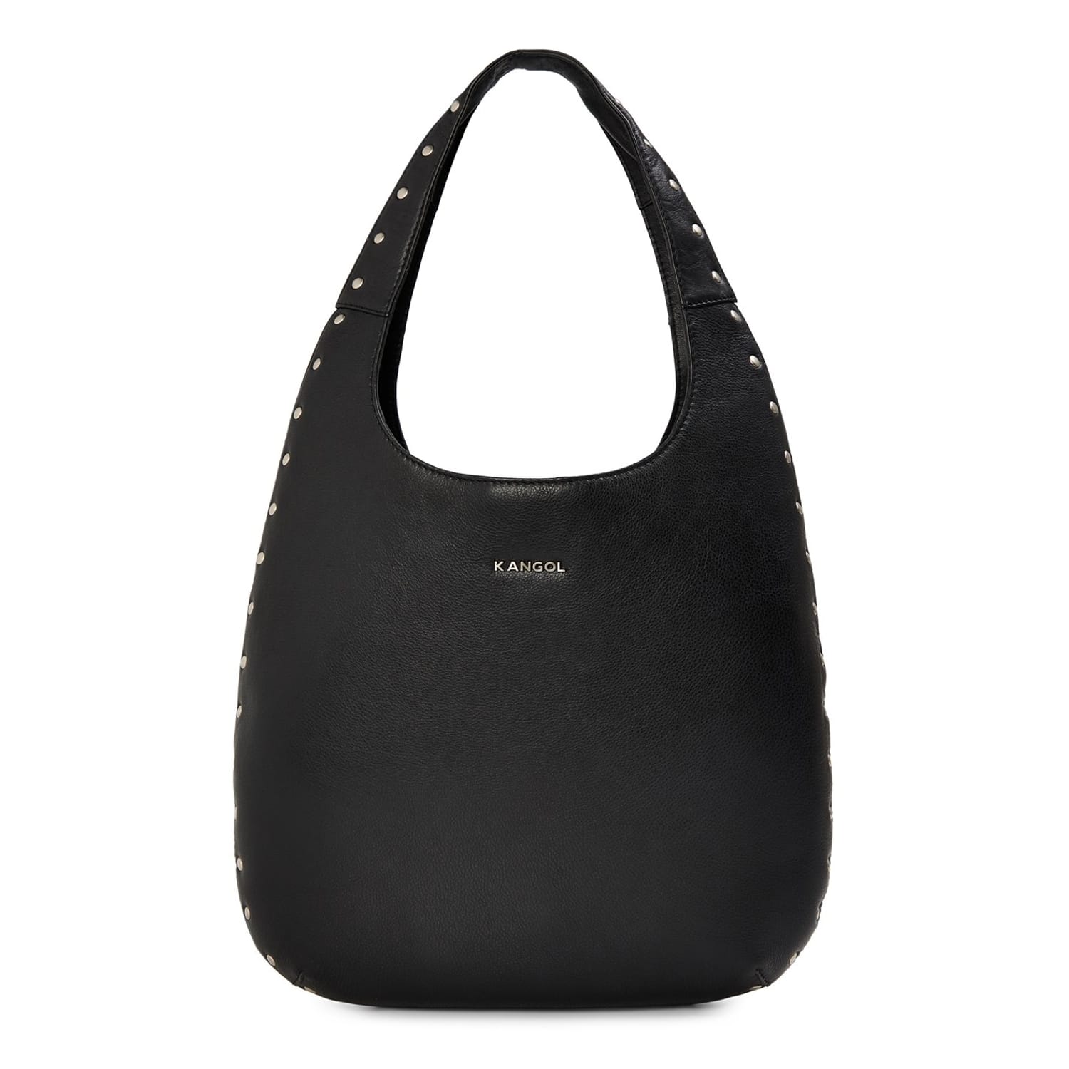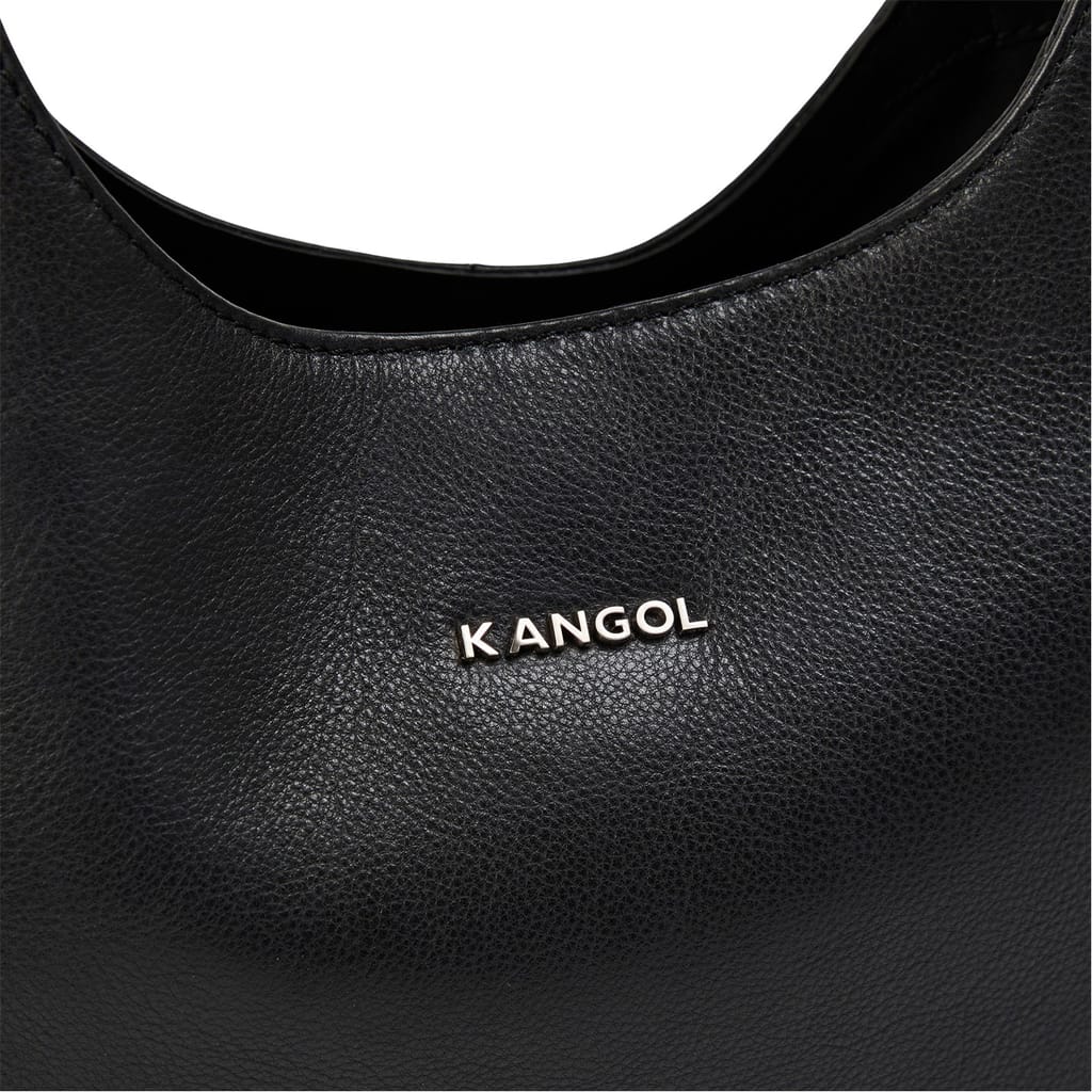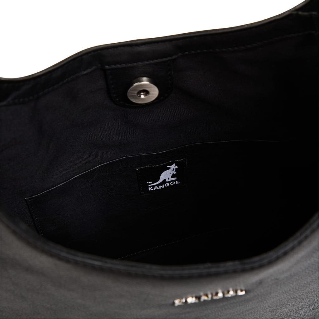 Discover the Kangol hobo bag, a stylish addition to your collection. This bag features a convenient snap button closure and a comfortable shoulder handle. Adorned with stud embellishments and a logo, it combines functionality with a touch of elegance, making it a versatile choice for any occasion. -