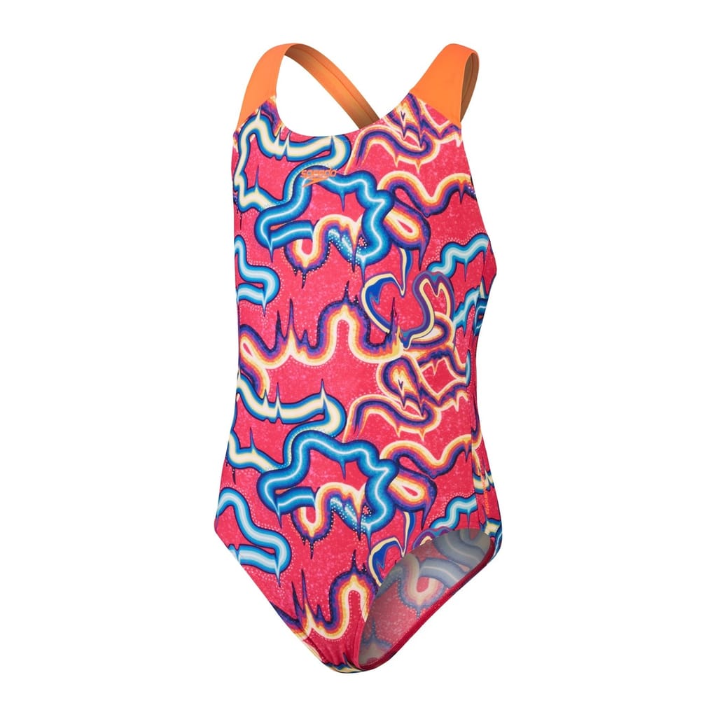 Discover the Speedo swimwear, a high-neck one-piece featuring an abstract pattern. This stylish piece combines functionality with a modern design, perfect for your swimming activities. -