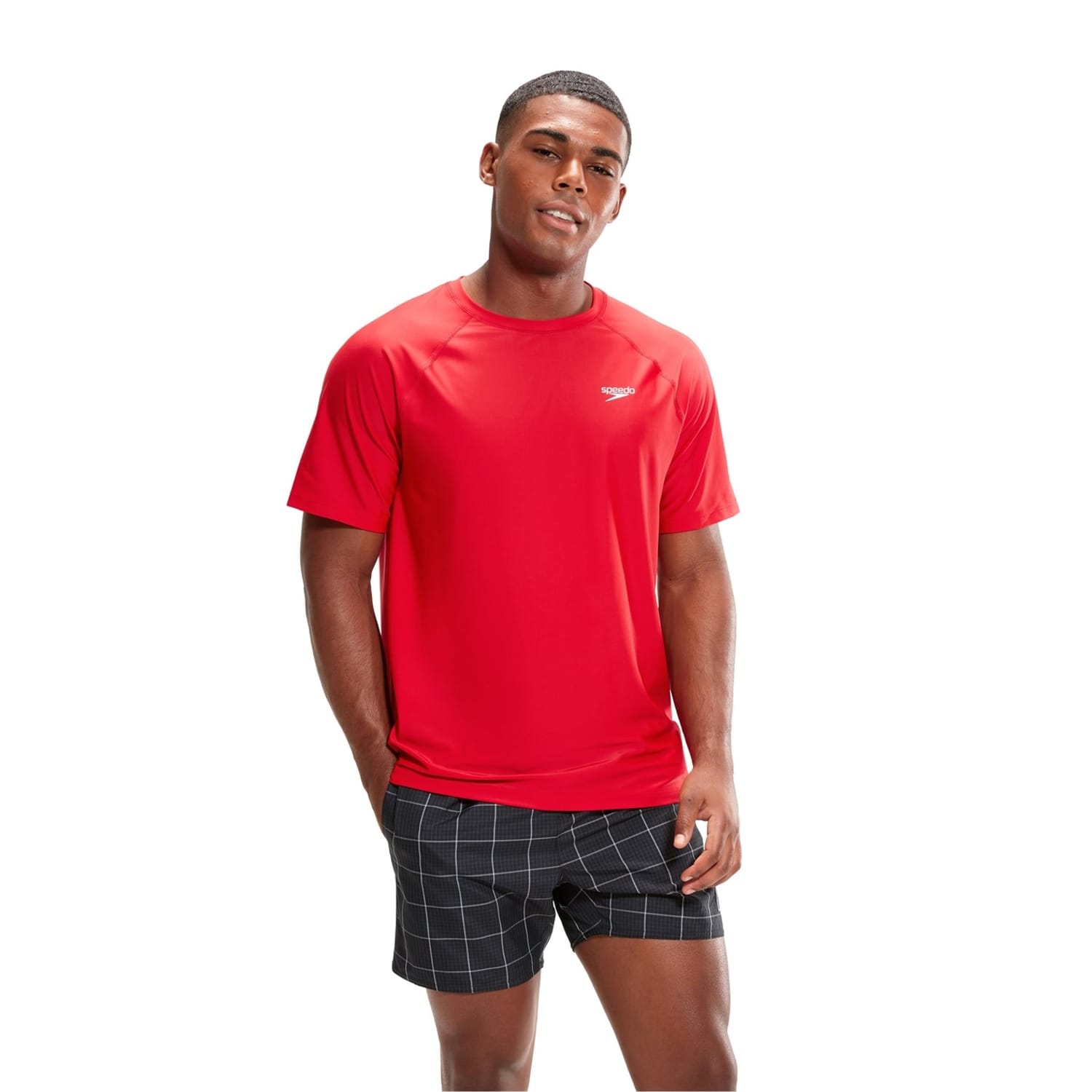 Elevate your training sessions with this Speedo t-shirt. Designed for performance, it features a crew neck and raglan sleeves, ensuring ease of movement. The regular fit offers comfort, making it ideal for various activities. Perfect for those seeking both style and functionality in their athletic wear. -