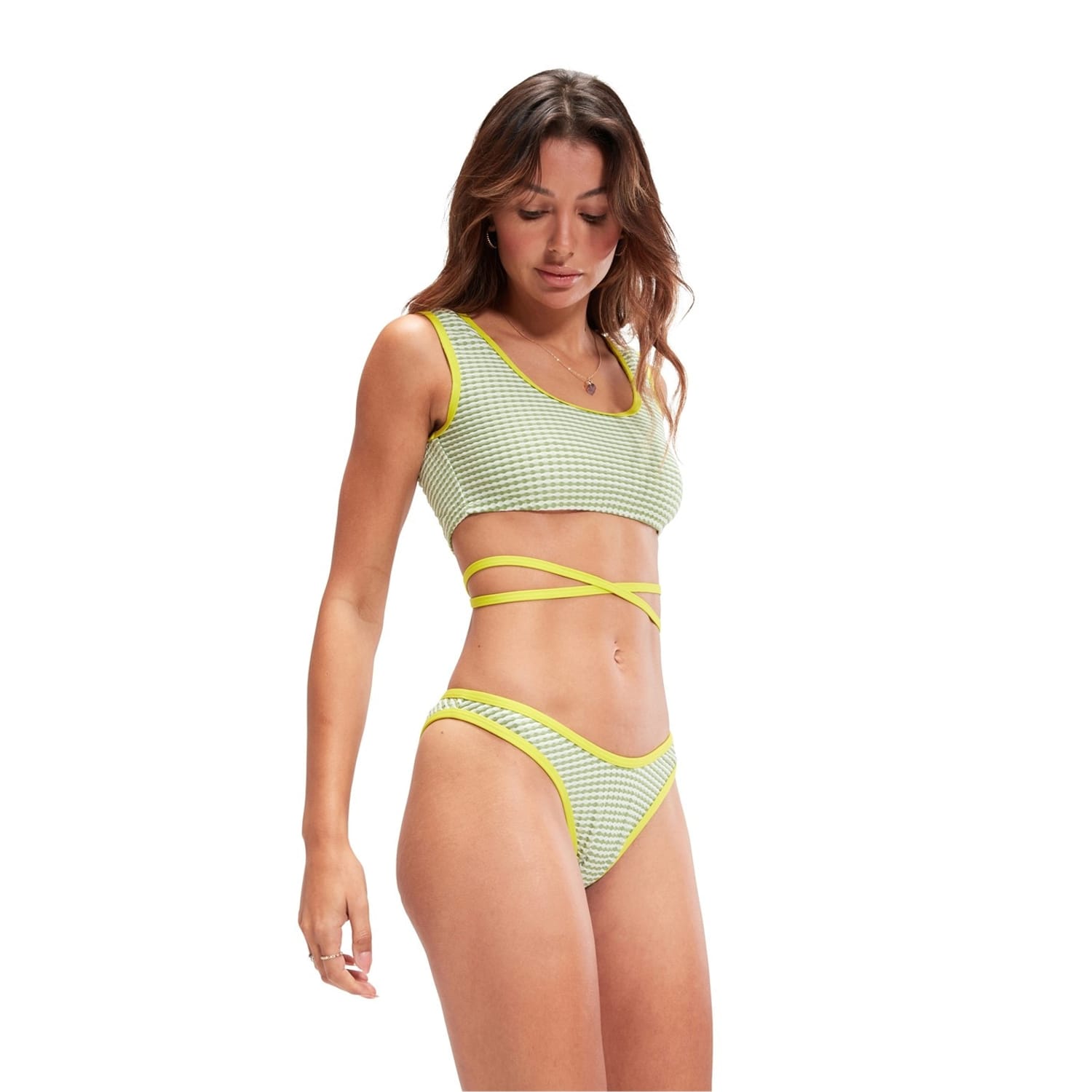Dive into style with Speedo's gingham two-piece swimwear. This bikini from the swimming collection combines classic design with modern flair, perfect for your next poolside adventure. The gingham pattern adds a timeless touch, ensuring you stand out in any aquatic setting. Experience the perfect blend of comfort and style with this chic swimwear choice. -